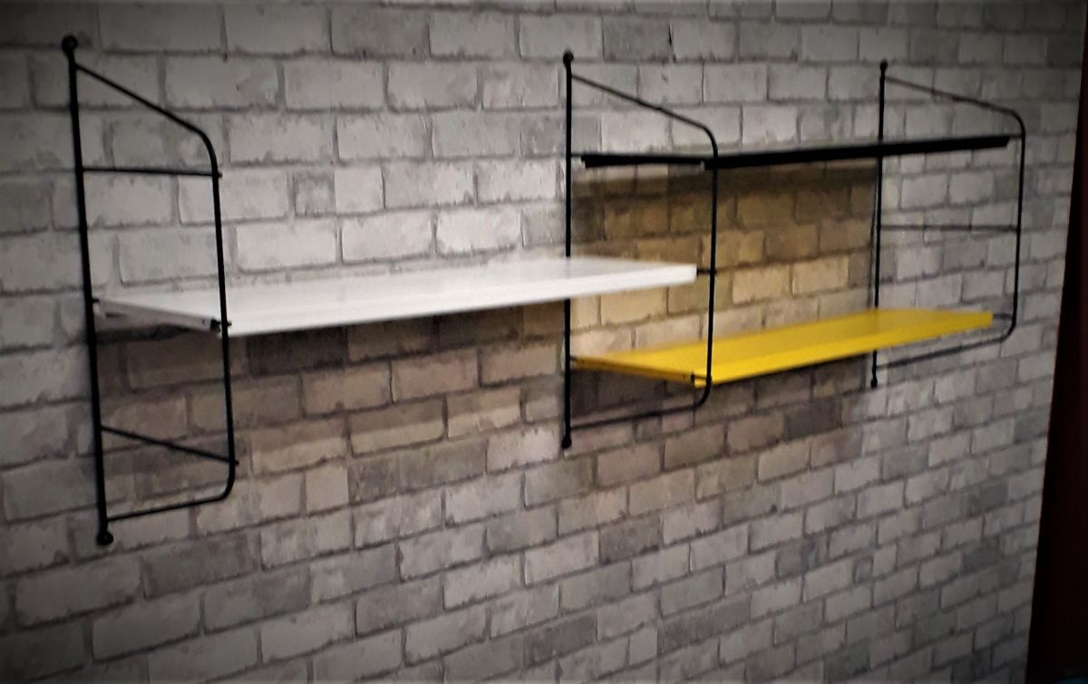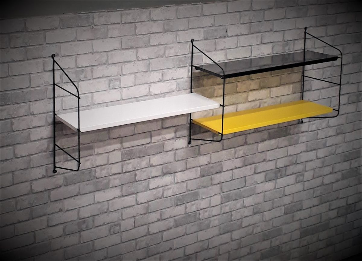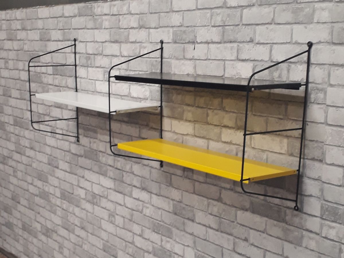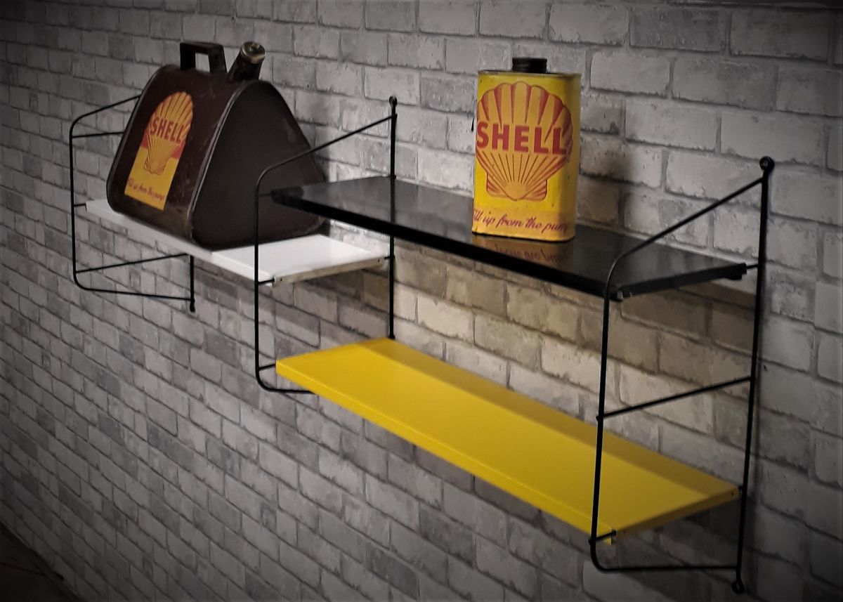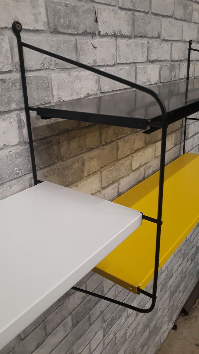 etagere metal ; tomado style 1960 a 70s tricolors ,blanc,jaune,noir 3 montants noir mat 130x45x24