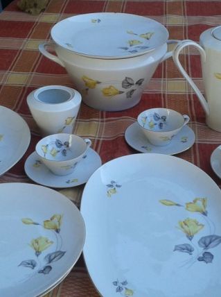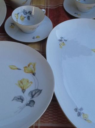 Magnifique service porcelaine de Bavière pour 2, peint à la main, finesse de l'esquisse...