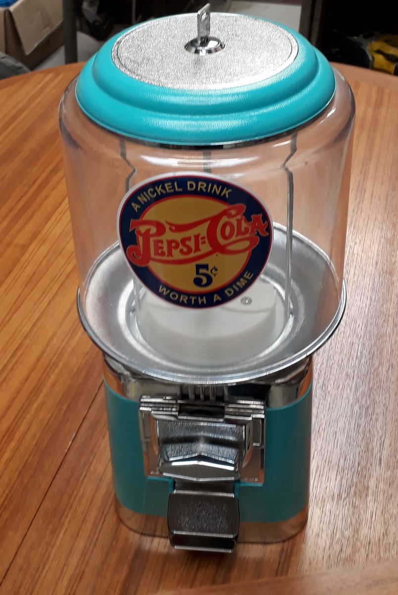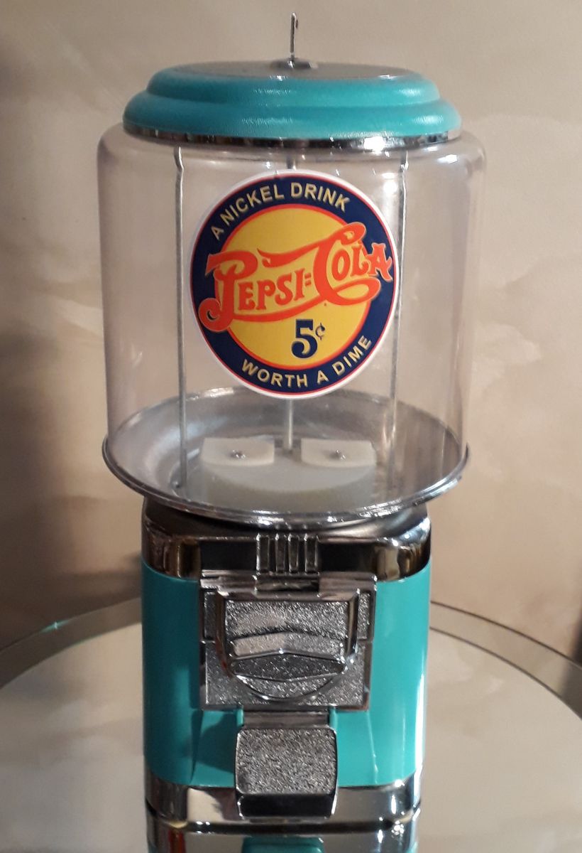 Distributeur chewing gum et bonbon en acier. Style vintage, 1975 a 80s globe eu acrilique, proche du neuf. Tres deco, tres propre et beau, .dimensions h68 X 20 X p20.