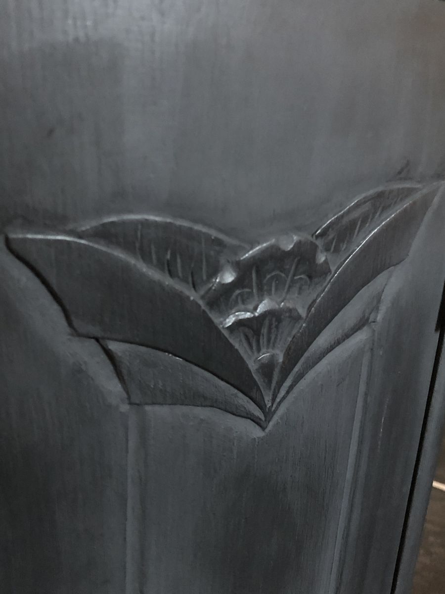 Oui bien sûr , c’est le noir mat « Queue de Pie » de chez Libéron , et j’ai appliqué par endroit une patiné incolore pour faire un aspect usé .