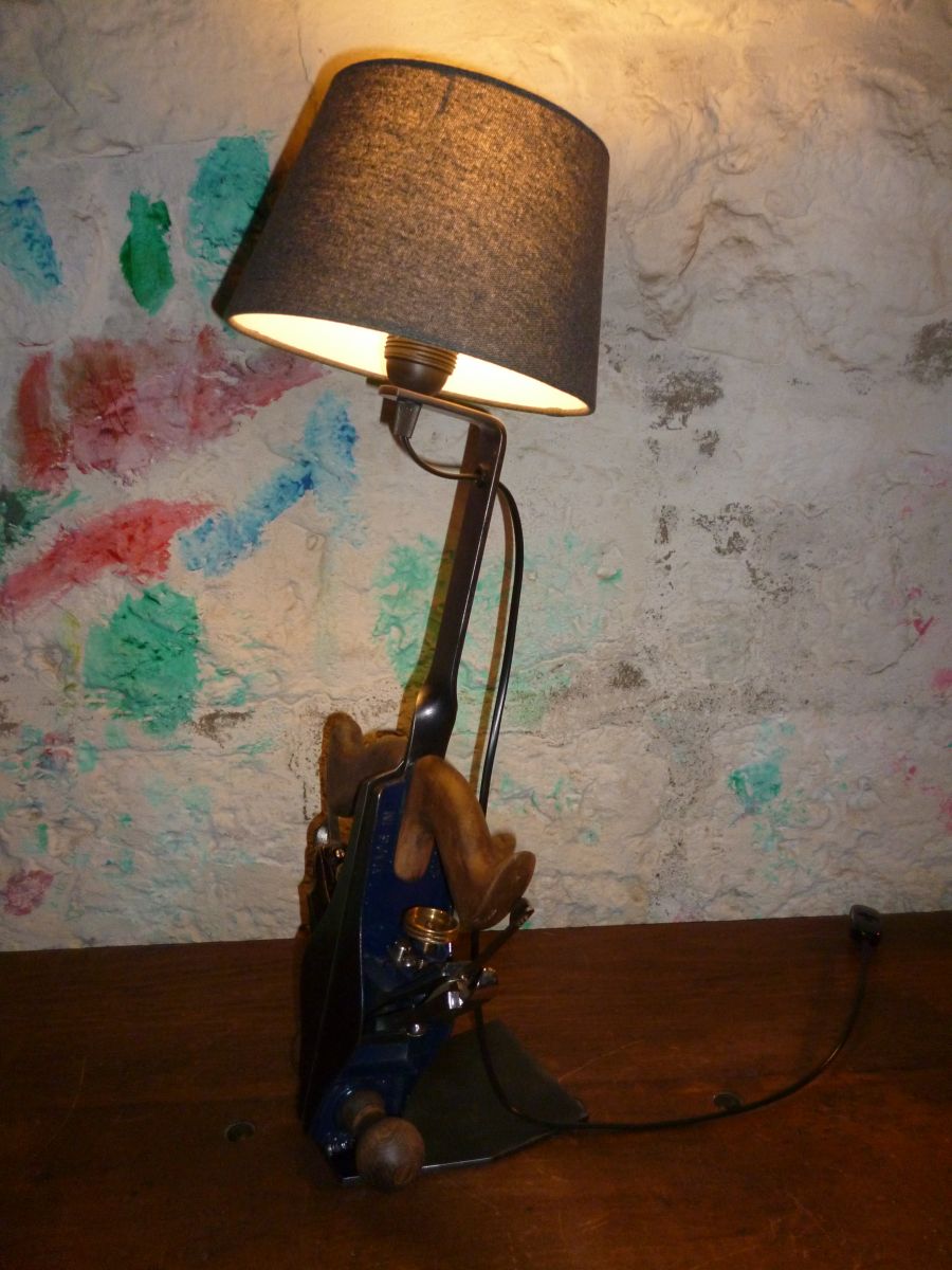 Lampe au design industriel realisee dans mon atelier a partir de 2 rabots metalliques " MADE IN ENGLAND " .