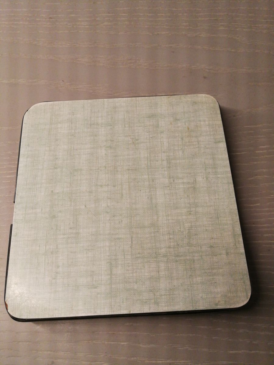 Dessous de plat Formica vintage de couleur vert clair, quelques traces d'usures à voir sur les photos.