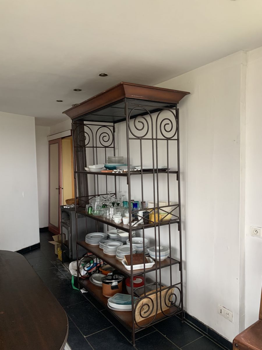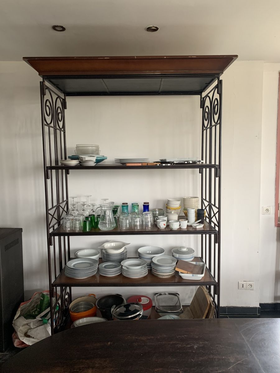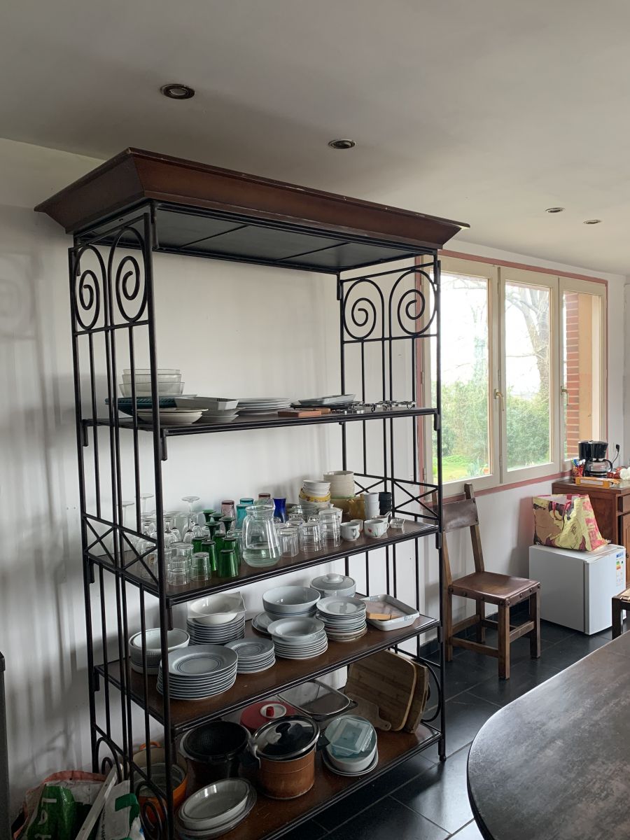 Étagère bois et chiffon structure fer forgé plateaux bois