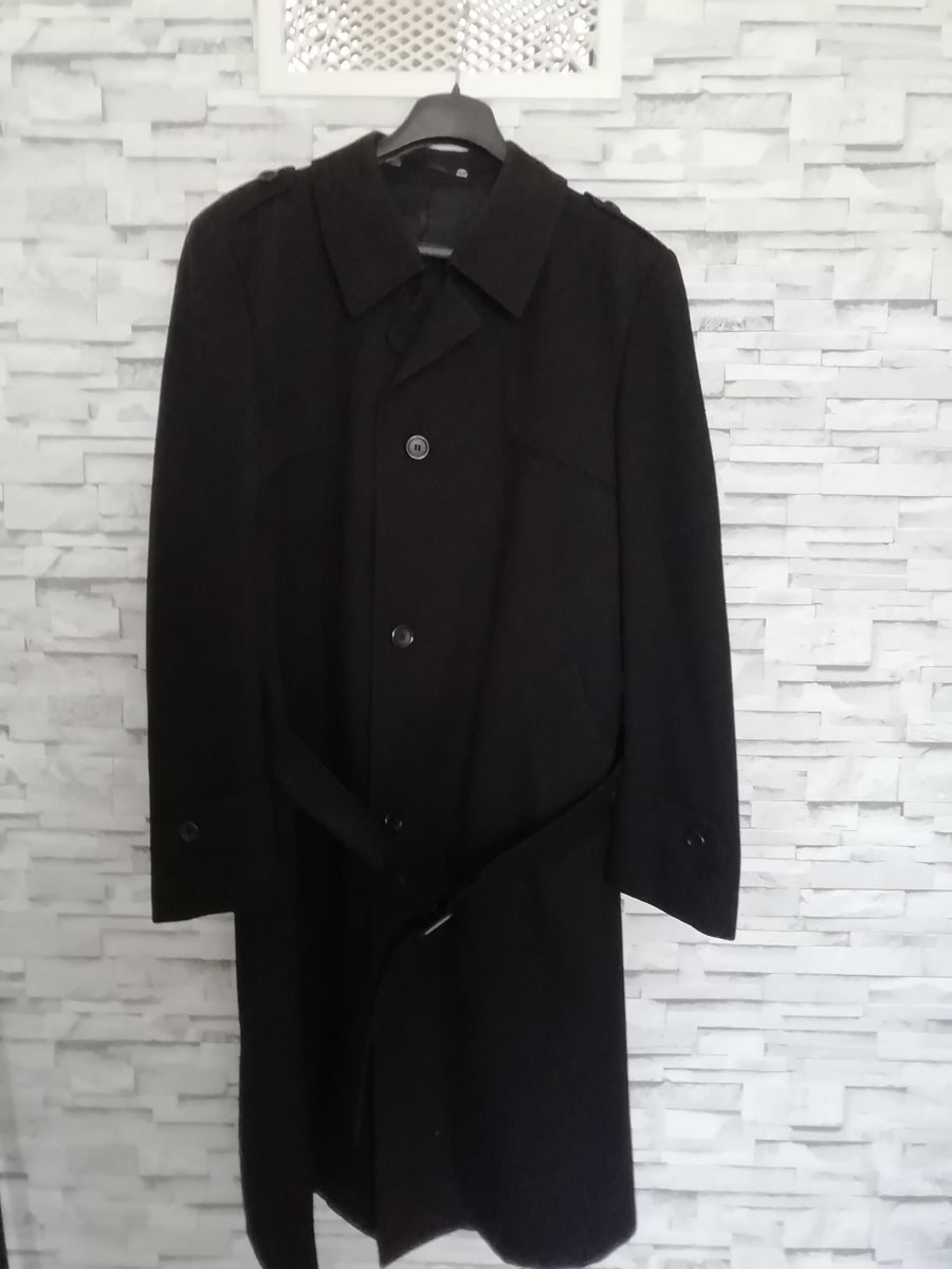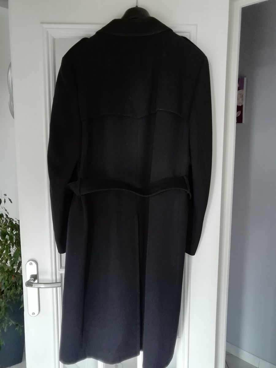 Par-dessus noir. Poche intérieure à fermeture éclair. Ceinture. Taille 46.