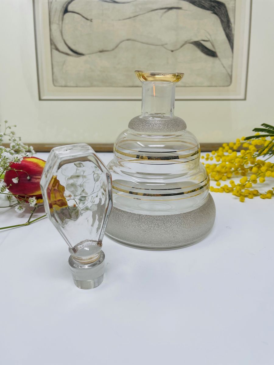 Carafe ou flacon verre soufflé et dorure - Circa 30