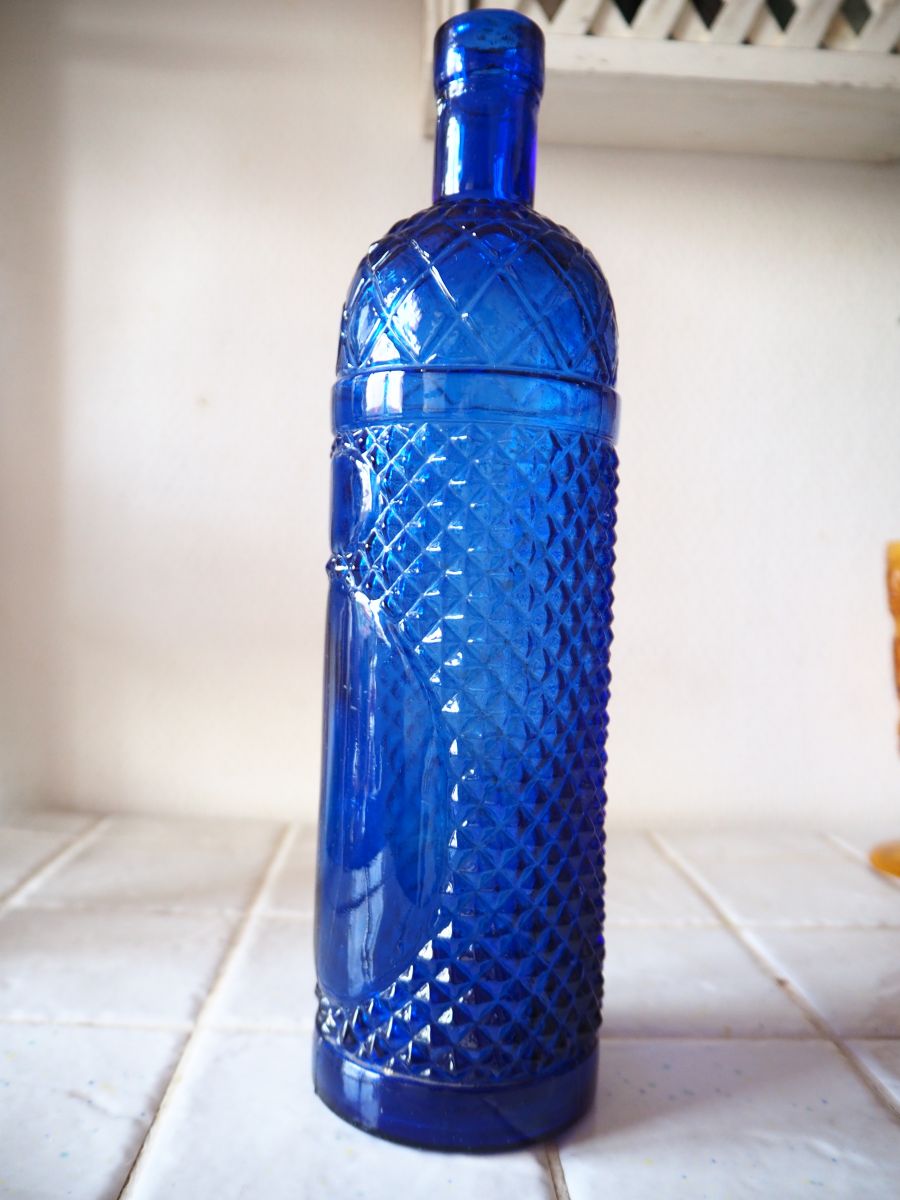 Deux jolies bouteilles italiennes en verre de couleur bleue datant des années 1960/1970.
