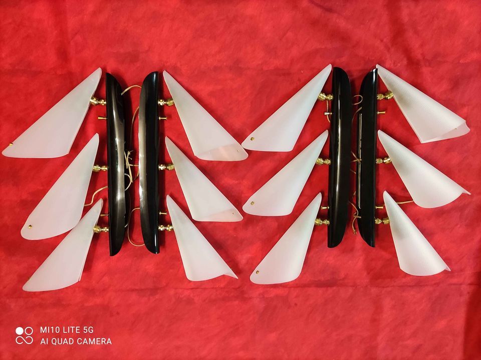 2 OU 4 APPLIQUES MURALES VINTAGE CORNETS PLEXIGLASS BLANC NO