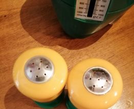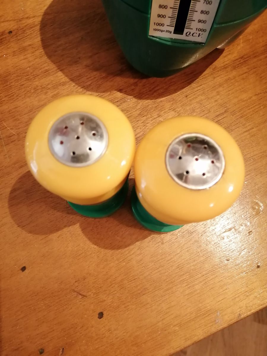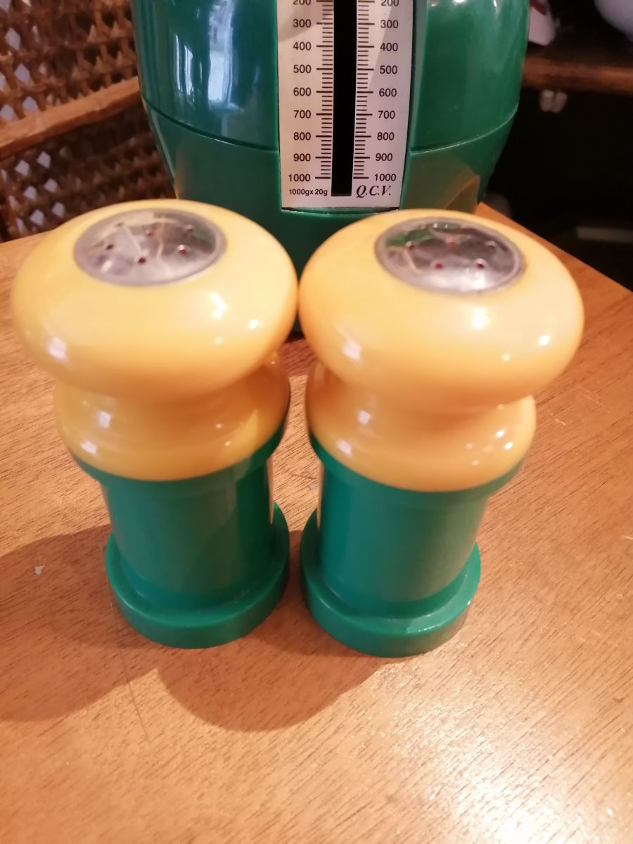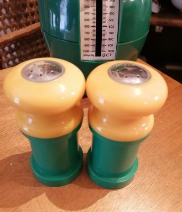 Set sel/poivre vintage 70's vert et jaune foncé