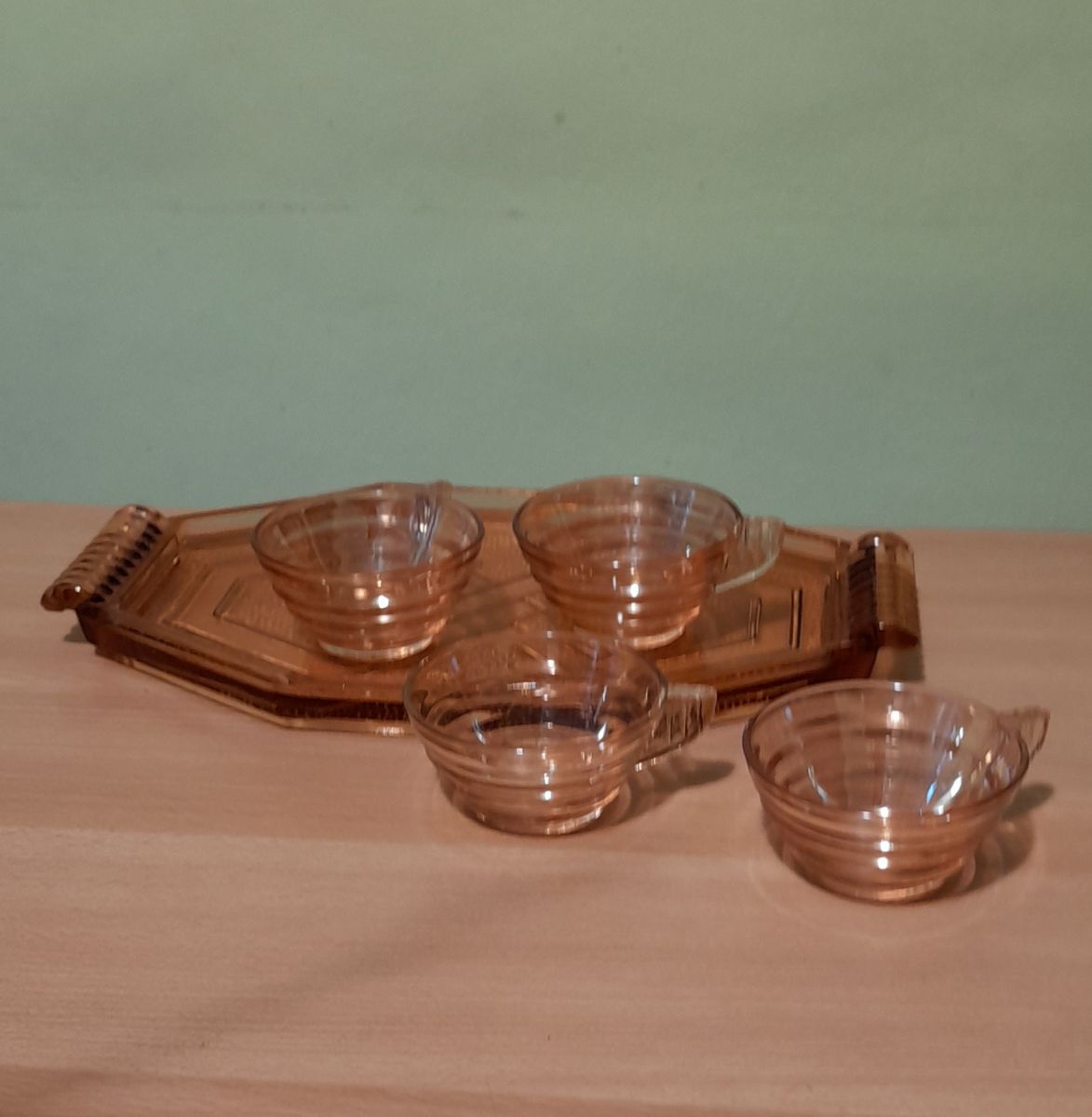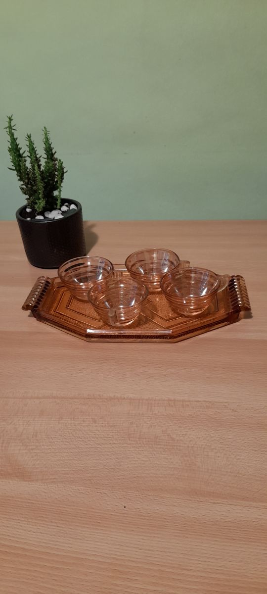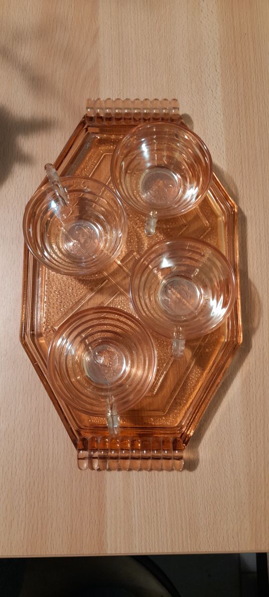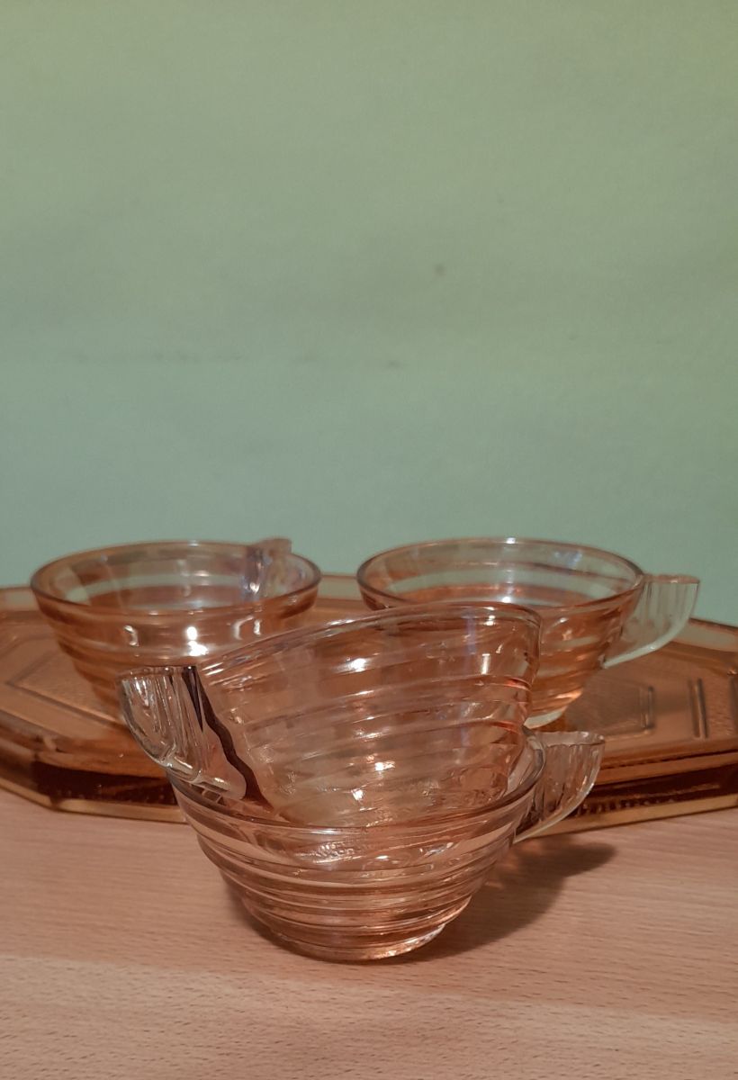 Plateau et tasses gondolo verre rose depressif,