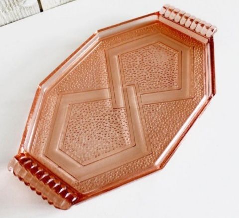 Ideal pour éclairer une cuisine moderne, je vous propose ce plateau en verre rose pressé, moulé, "de dépression", moderniste des années 30. Taille: 31 X 18 cm
