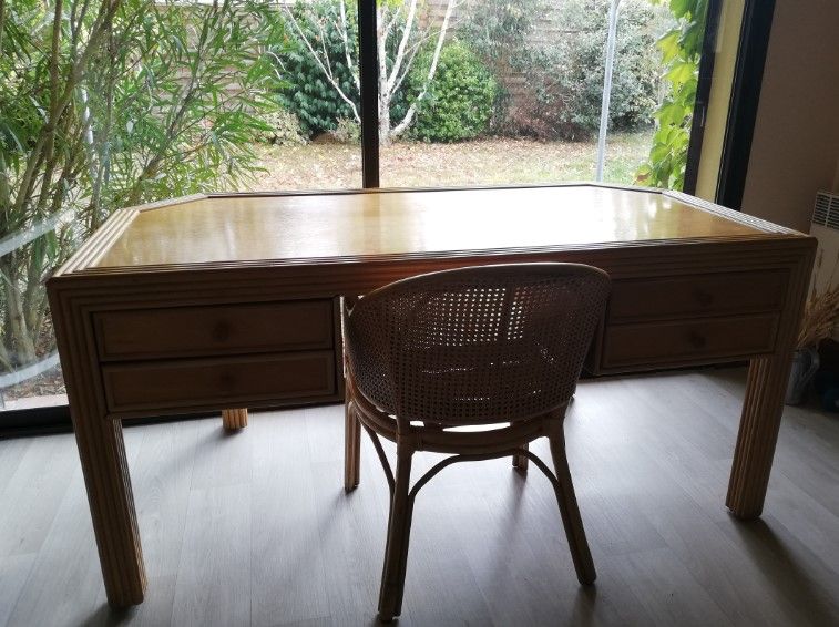 Bureau en rotin vintage Jacques Pergay