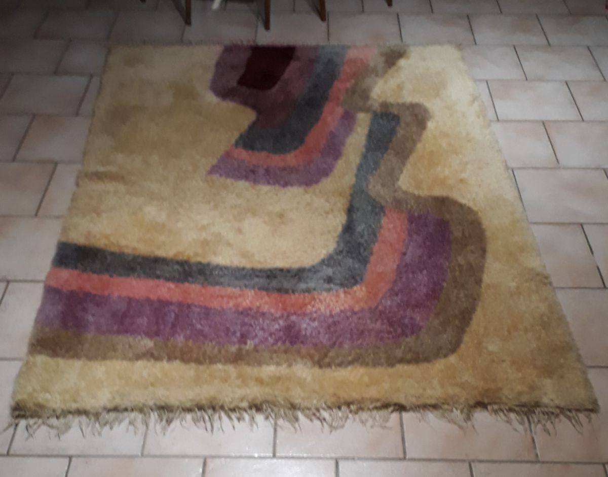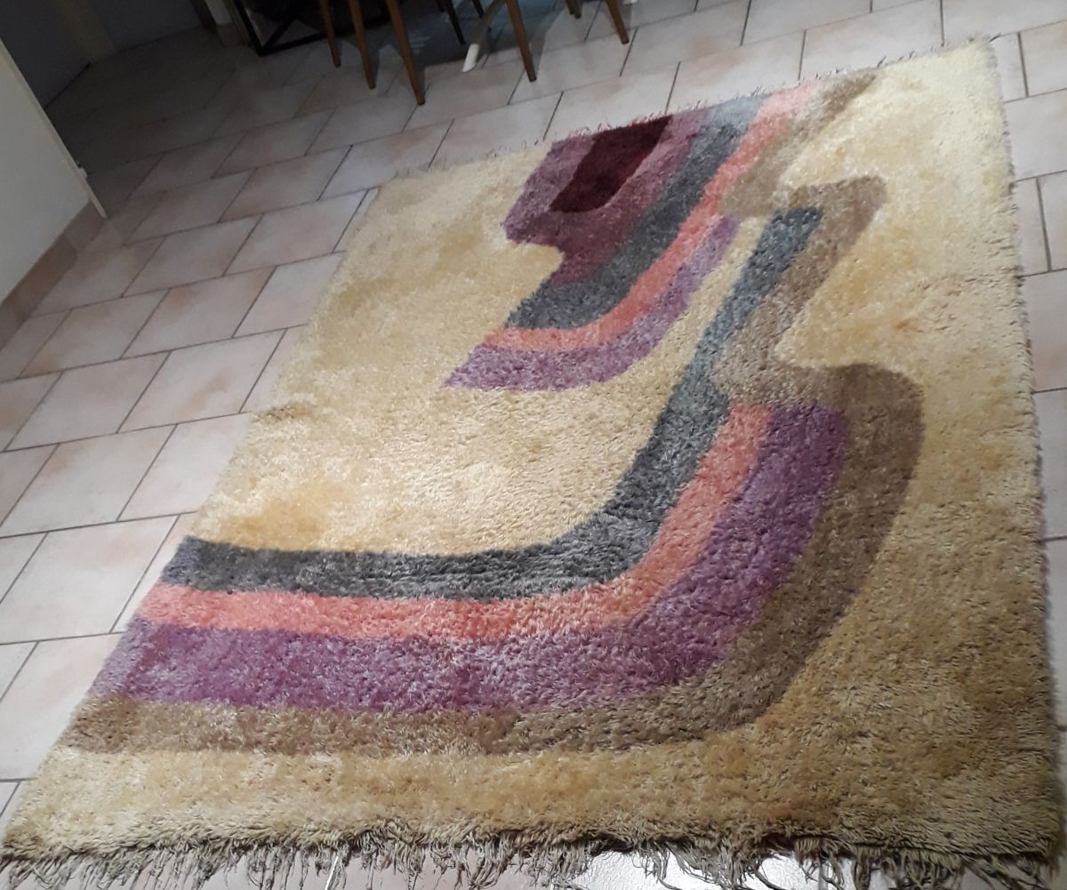 tapis laine beige 1960 a 1970 pop art , style rya ,desso