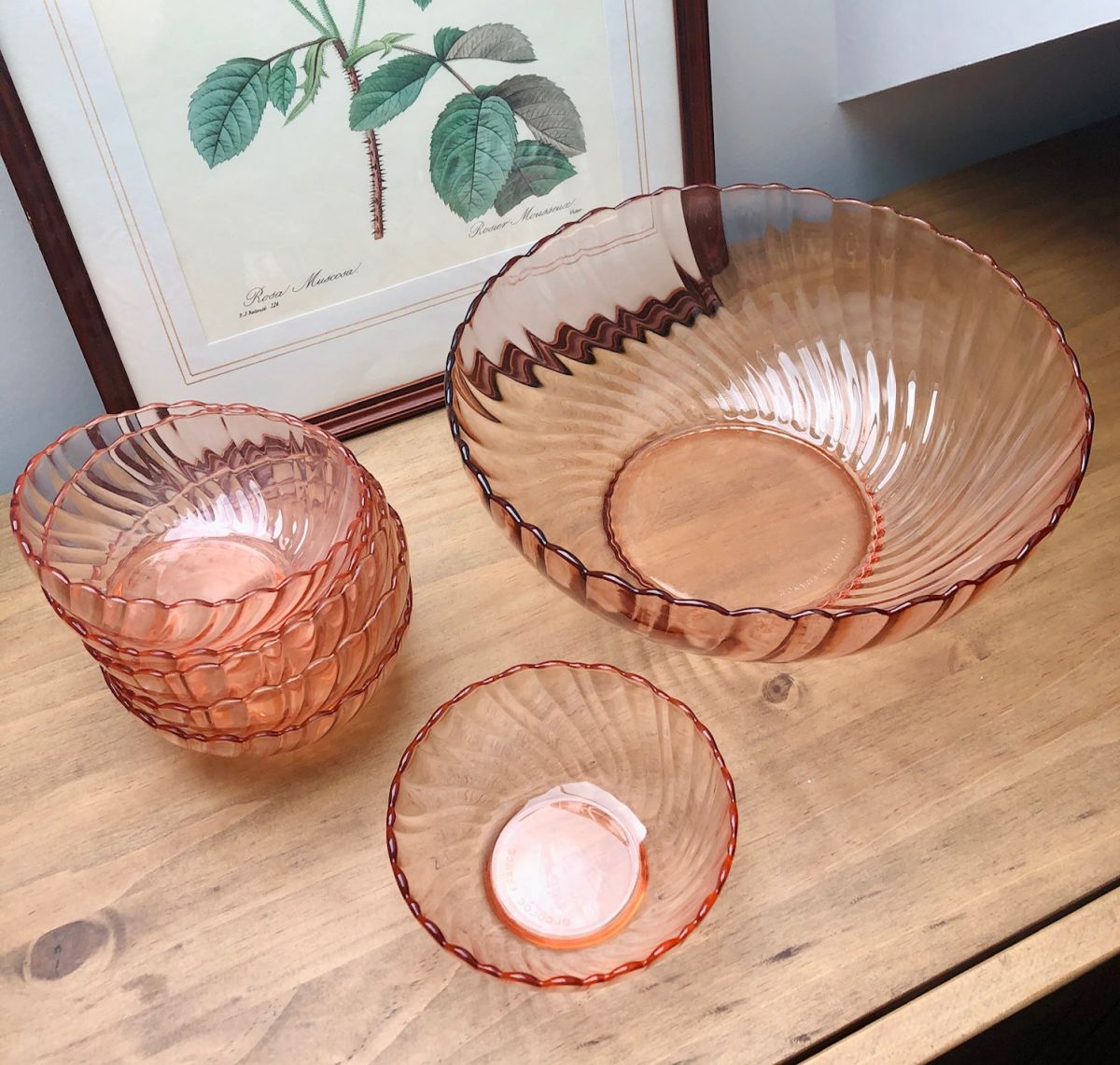 Grand saladier et six coupelles Arcoroc Rosaline.