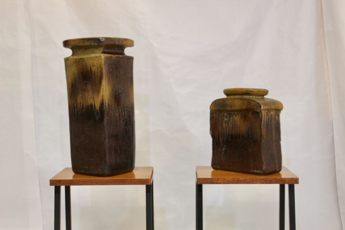 Duo de Vases en céramique conçu par Heiner Balzar pour la céramique Steuler, Allemagne de l'Ouest années 70. Production de Fat Lava.