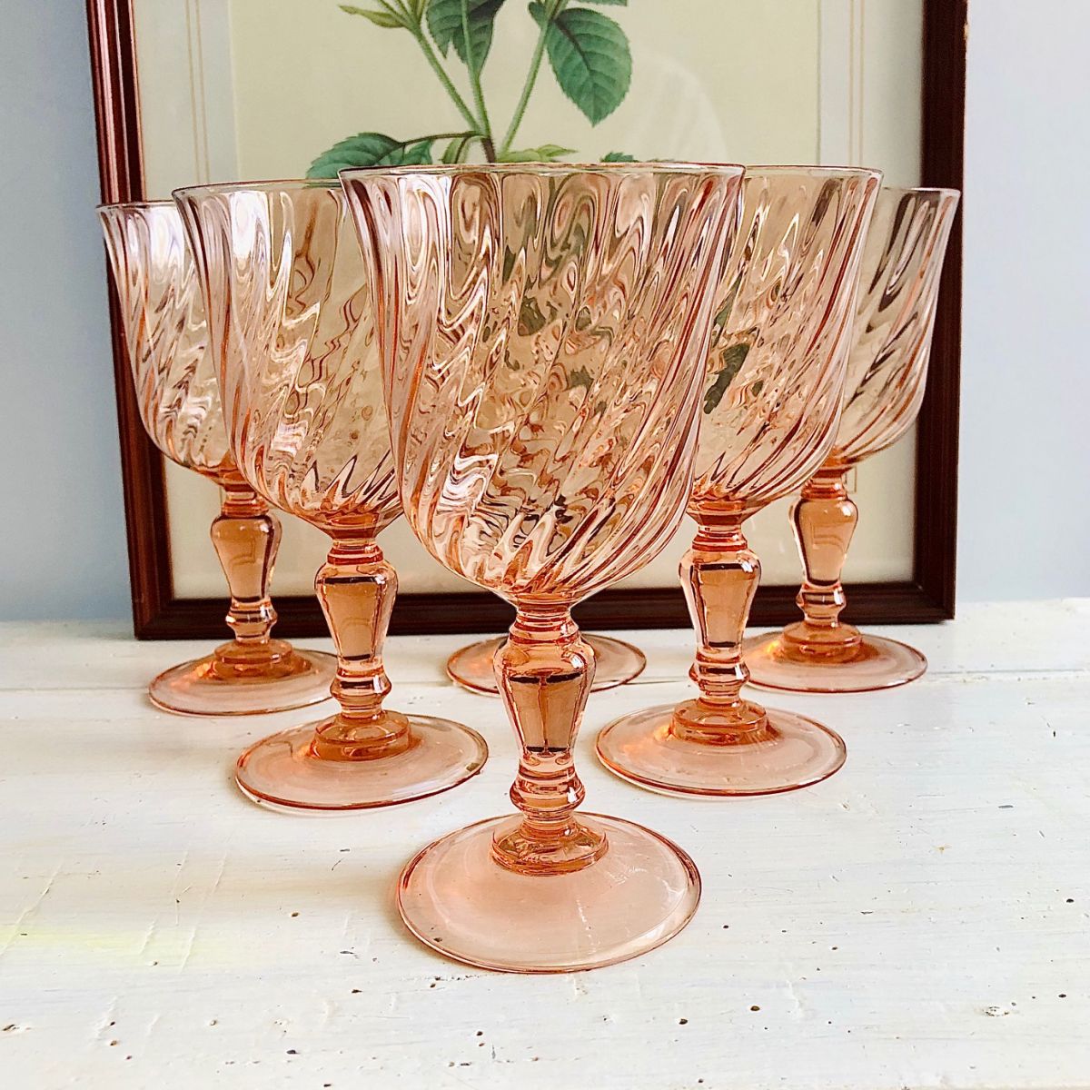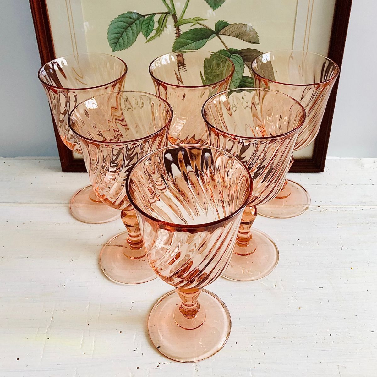 Six superbes verres à vin Arcoroc Rosaline, 12cm, années 70
