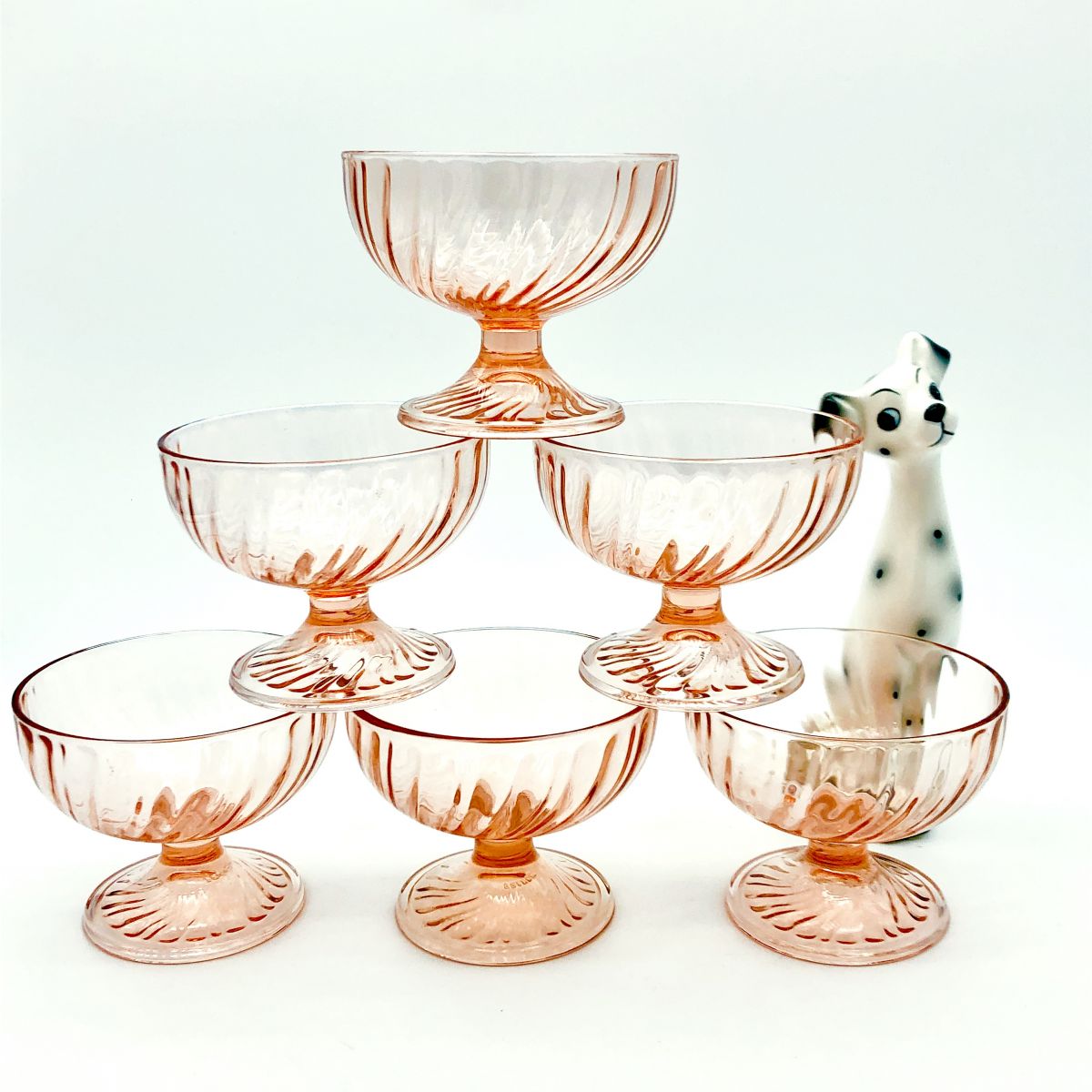 Six coupes à dessert Arcoroc Rosaline en verre rose