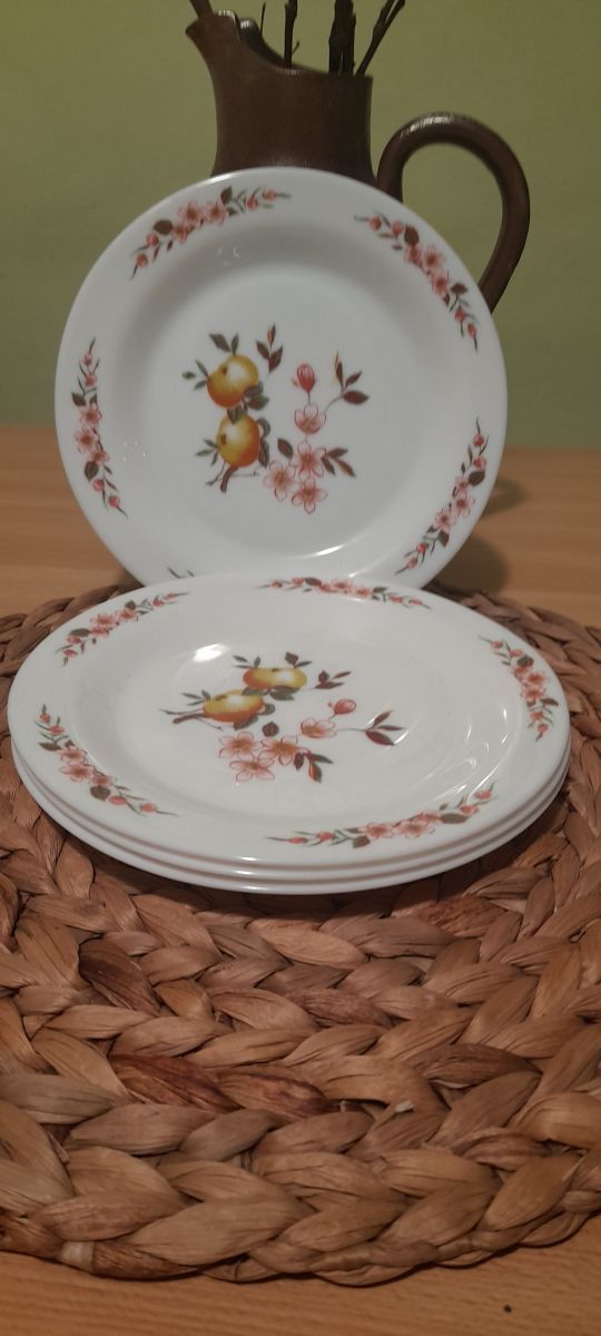 4 assiettes dessert Arcopal pommes et fleurs de pommier
