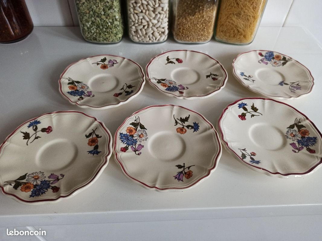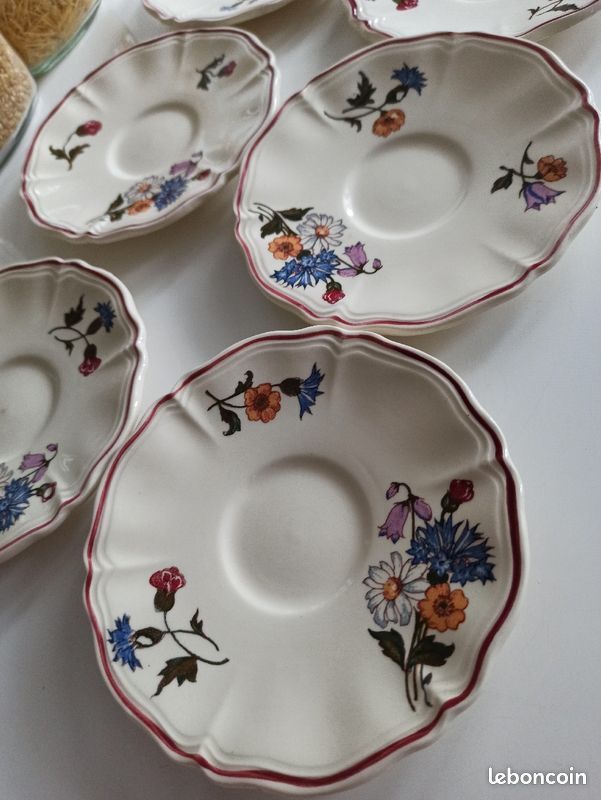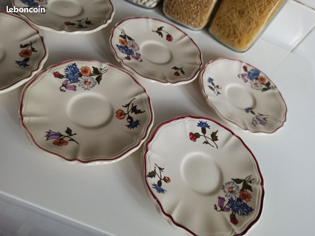 Lot de 6 Charmantes coupelles de tasse à café, décors floral avec liseré bordeaux