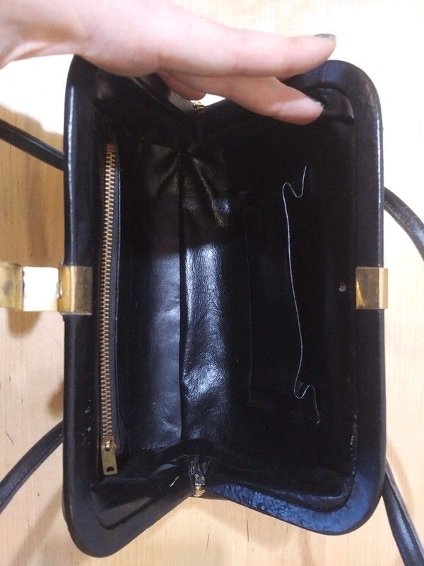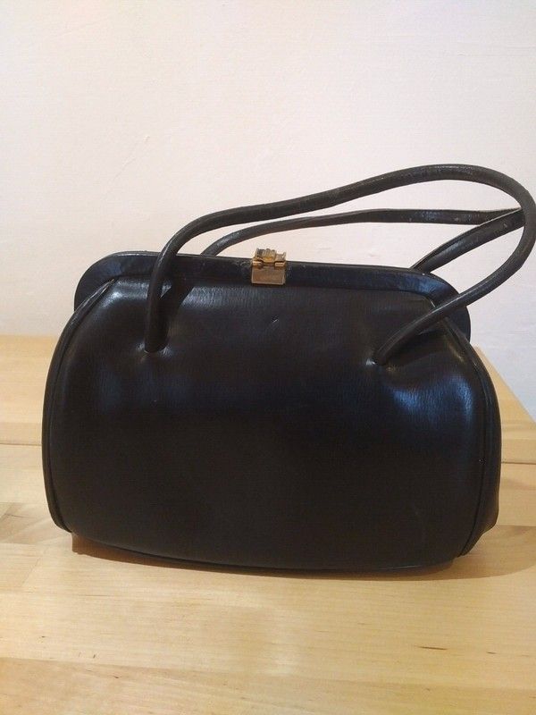 Sac à main vintage cuir noir forme boule 40's 50's