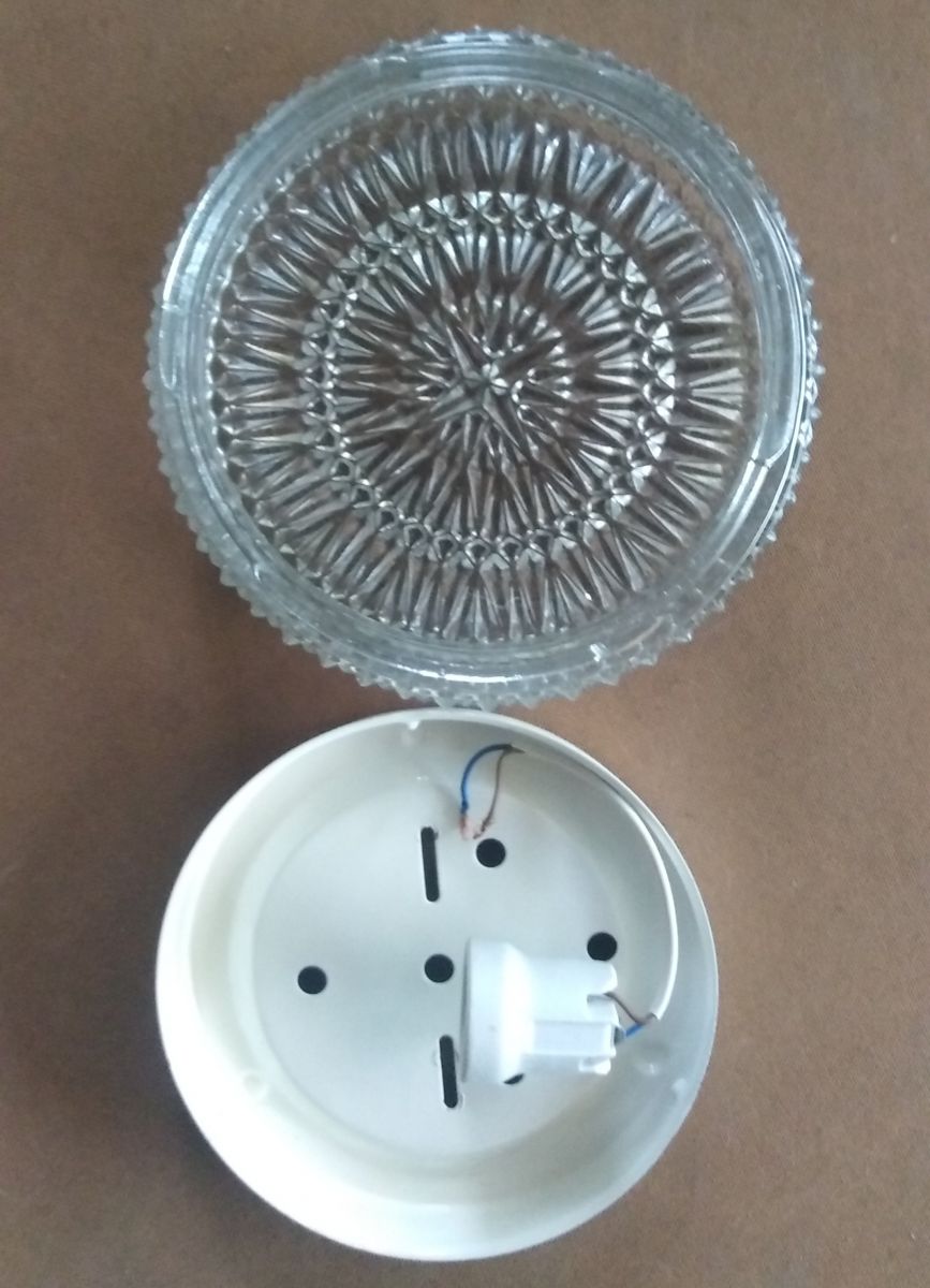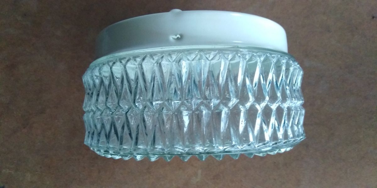 Applique ou plafonnier en verre ,avec sa douille E 27 en bakélite.