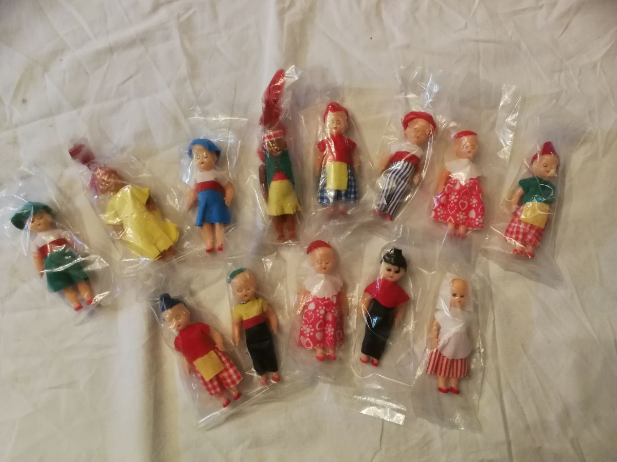 Lot de 13 poupées aux yeux mobiles, chacune emballée dans sa pochette d'origine.