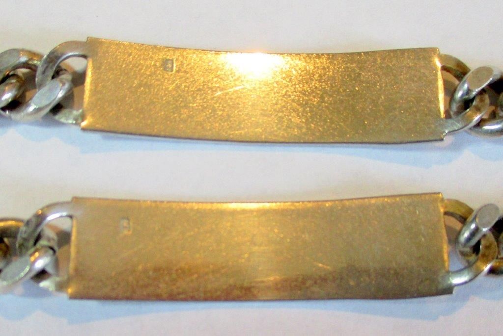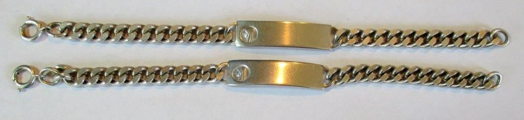 Deux bracelets gourmettes vierges de toute inscription avec l'icône de la vierge.
