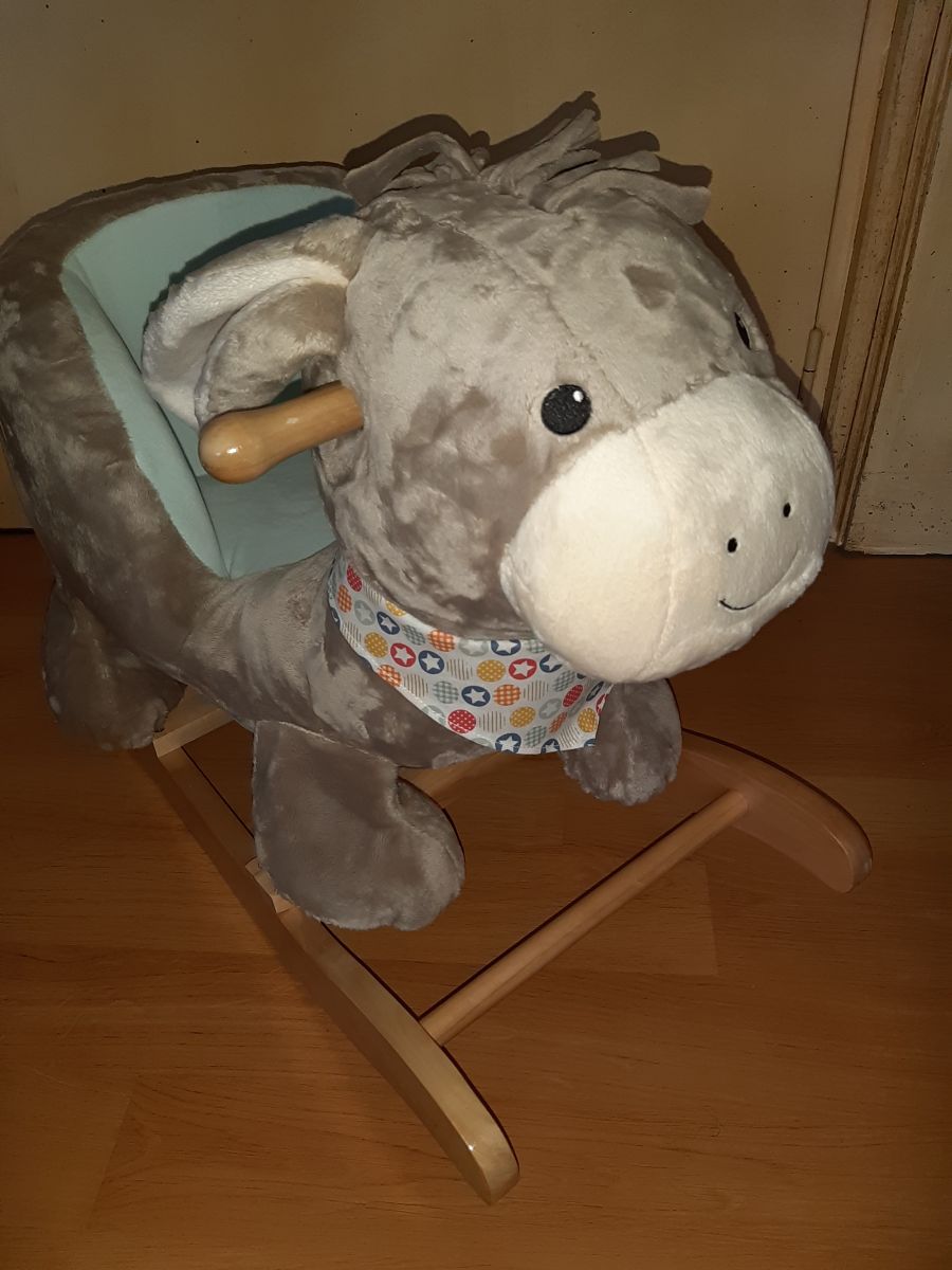 Animal à bascule robuste et rembourré pour bébés âgés de 12-36 mois avec joli motif d'âne