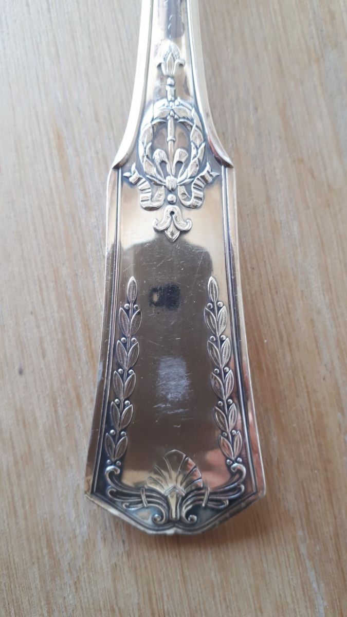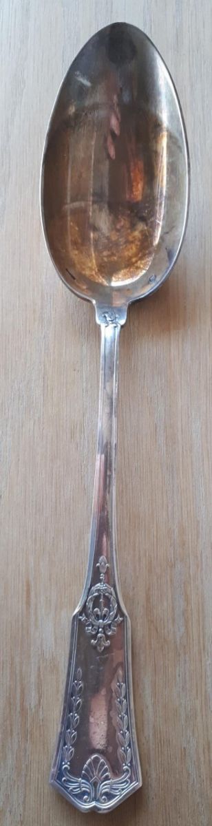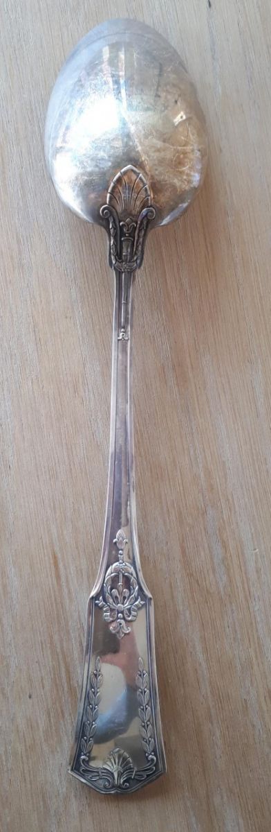 Cuillère de service en métal argenté de l'orfèvrerie Chambly. Modèle Empire 1950