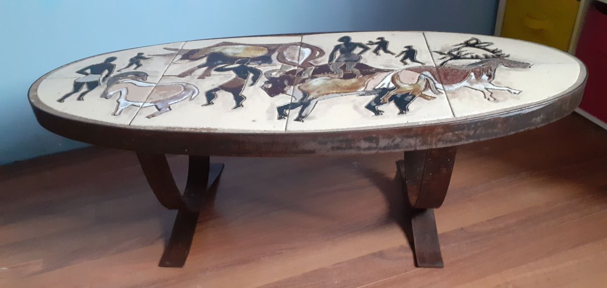 Marque : Table de salon ovale Dessus céramique Pièce unique conçue sur commande Pied métal