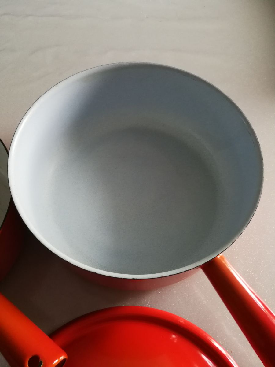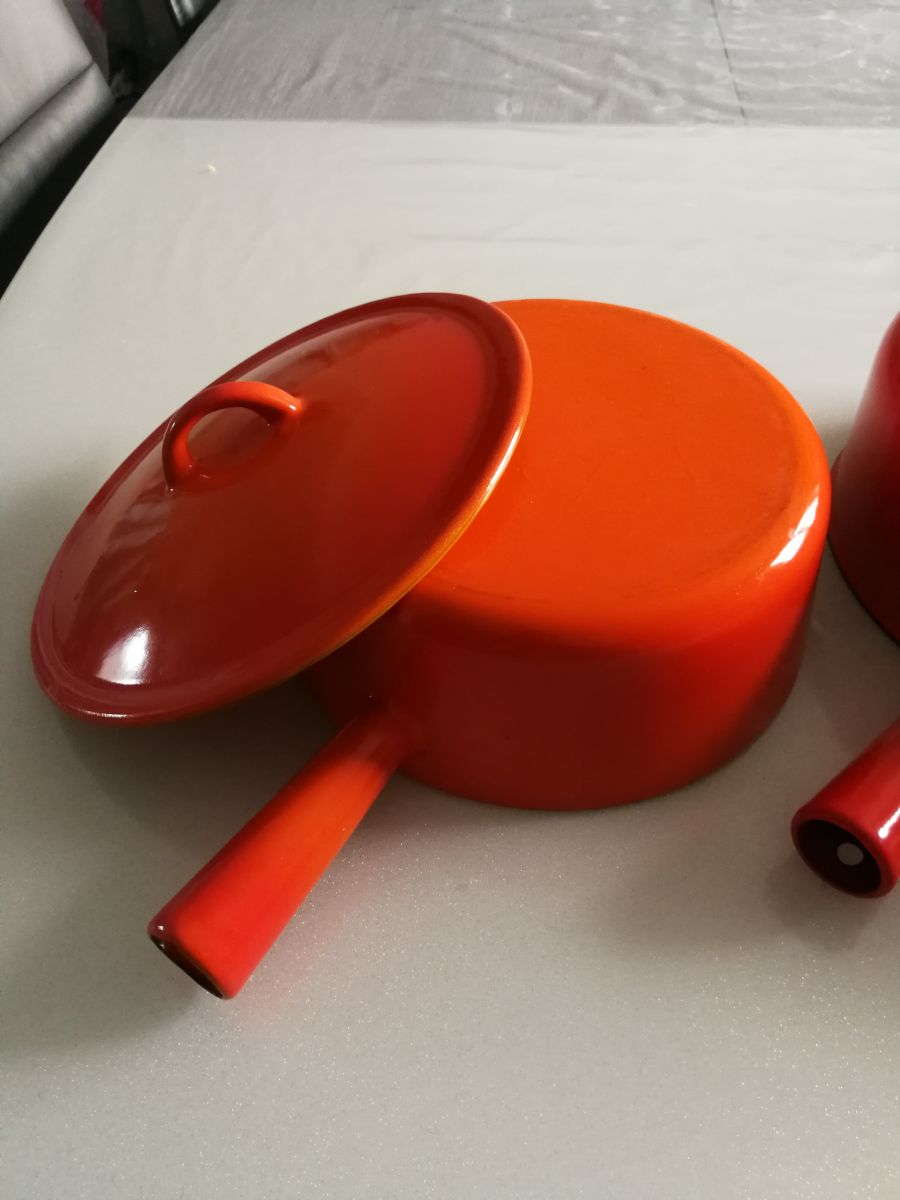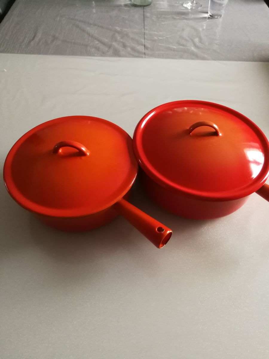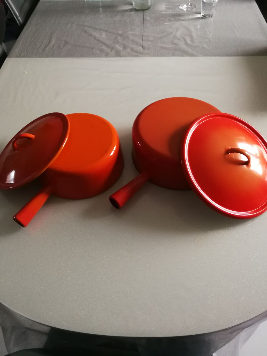 Cocotte en fer vintage orange dans un bon état, idéal pour une déco d'intérieur.