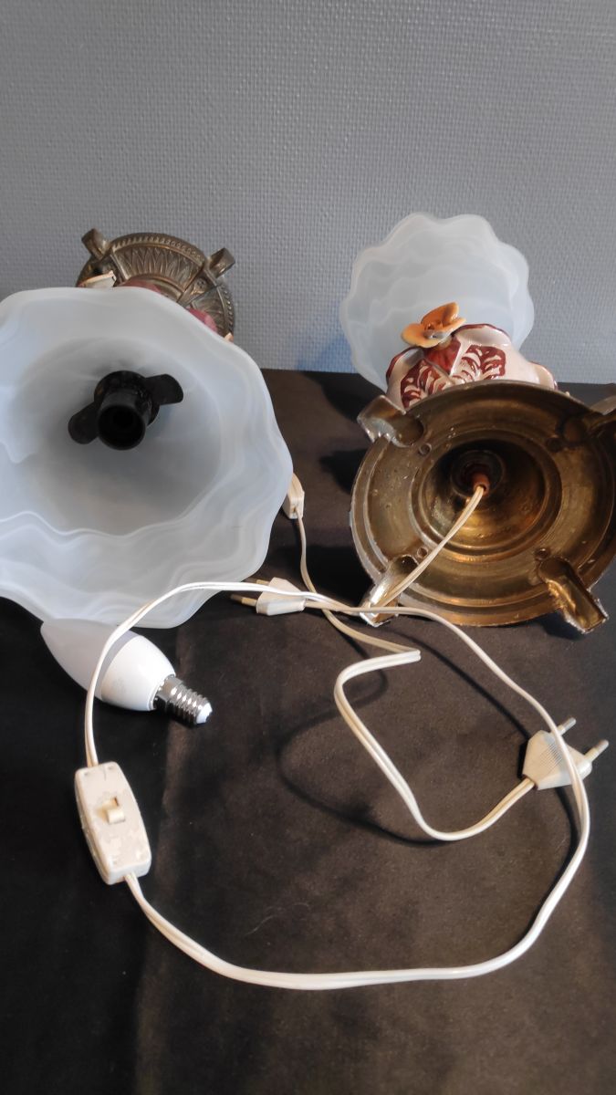lampes laiton et céramique avec tulipes verre dépoli blanc