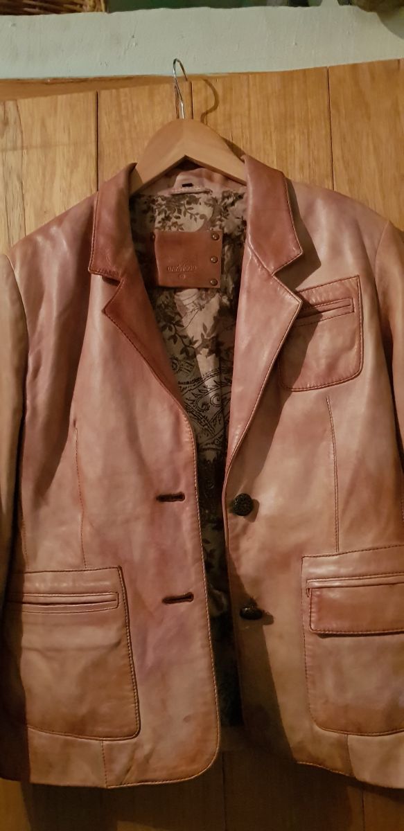 veste cuir vintage oakwood, en bon état d'ensemble. Il y a juste une légère éraflure sur le devant mais peu visible et se fond dans la patine du cuir.