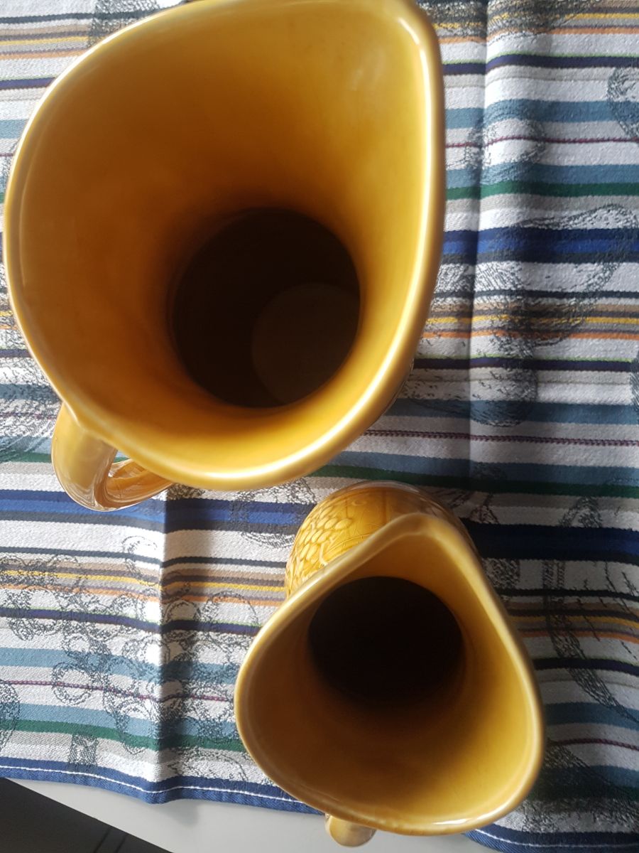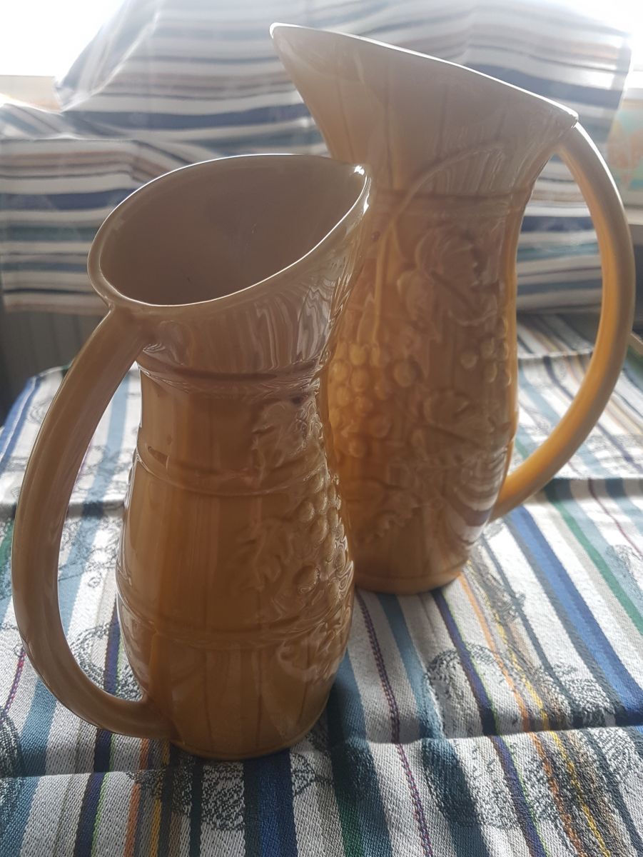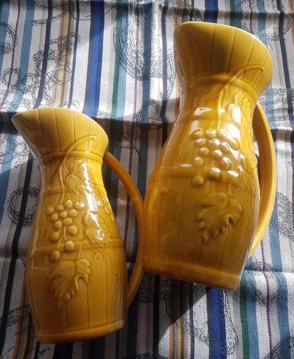 Ensemble de 2 cruches ou carafes à vin **vintage** en faience de Sarreguemines