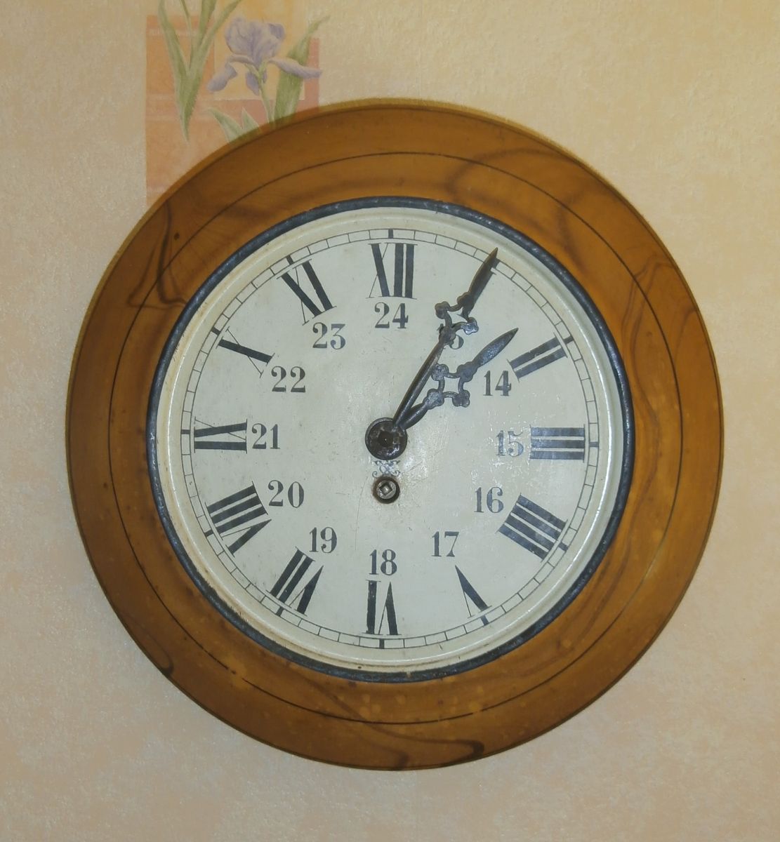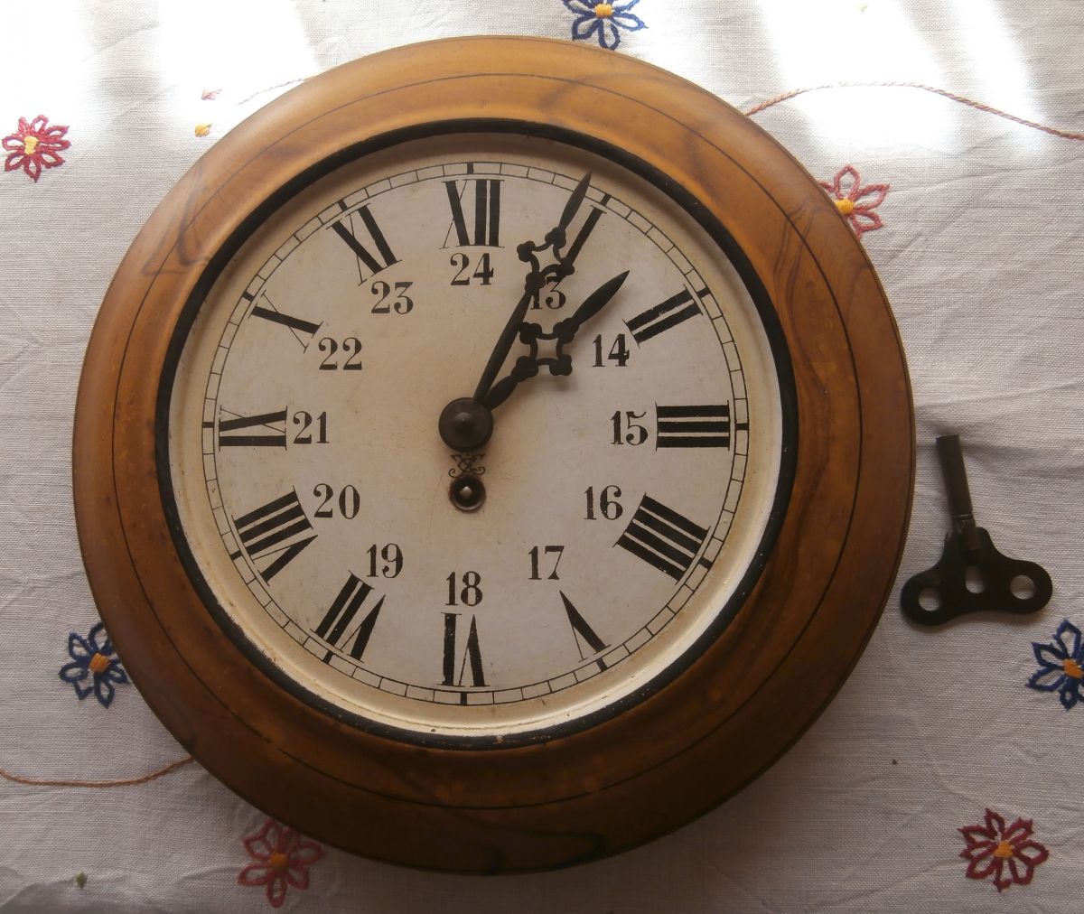 Magnifique pendule murale Années 20 / 30 en tôle imitation bois
