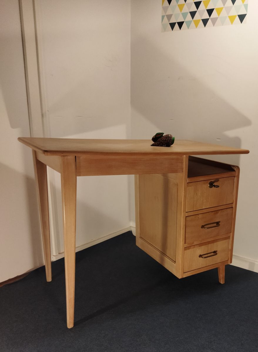 Bureau scandinave . Hêtre massif , style déstructuré . Années 50