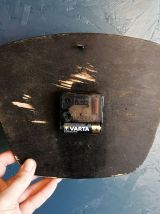 Pour préserver votre tranquillité, j'ai choisi un système silencieux qui fonctionne avec une pile alcaline AA et qui vous sera fourni pour l'installer dès sa réception. Le mécanisme (situé à l'arrière de l'horloge) a une petite mollette qui permet de régler l'heure.