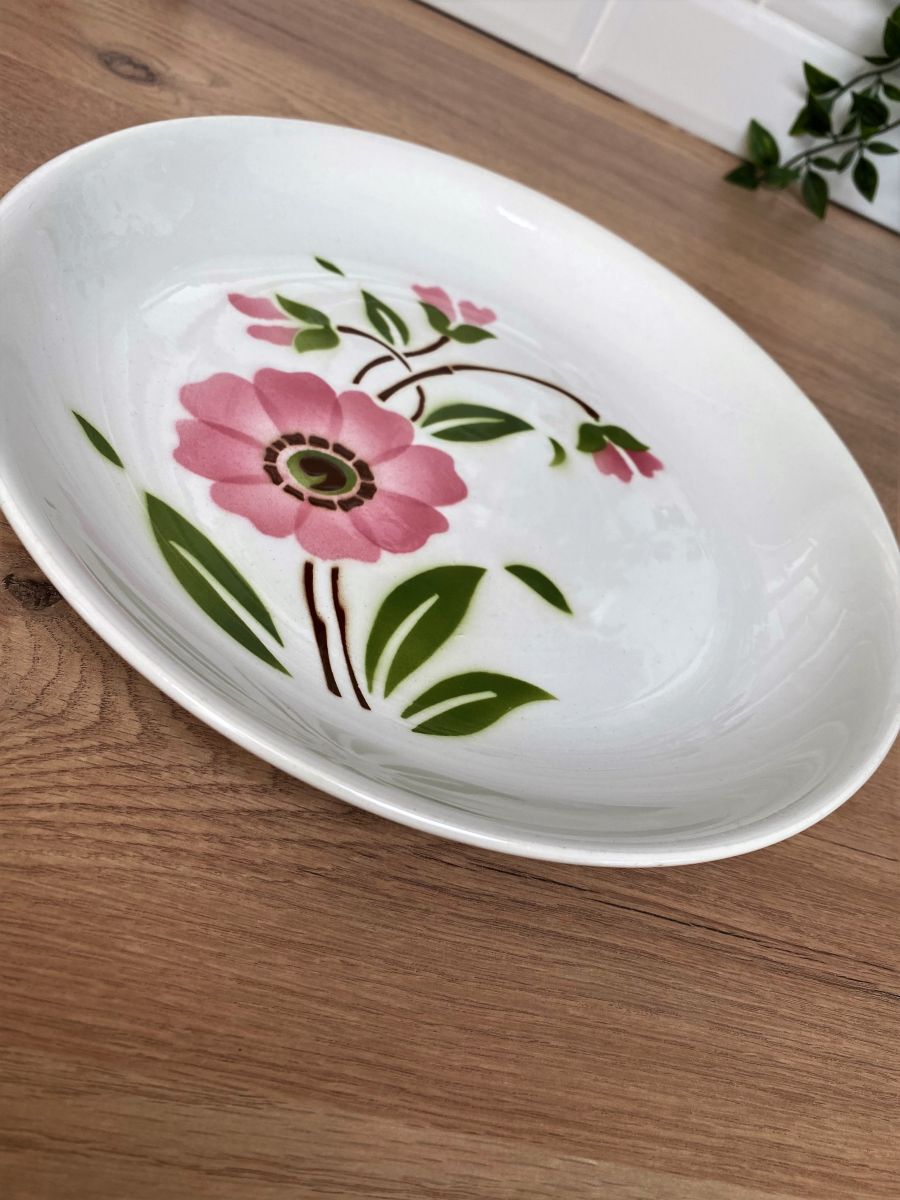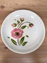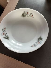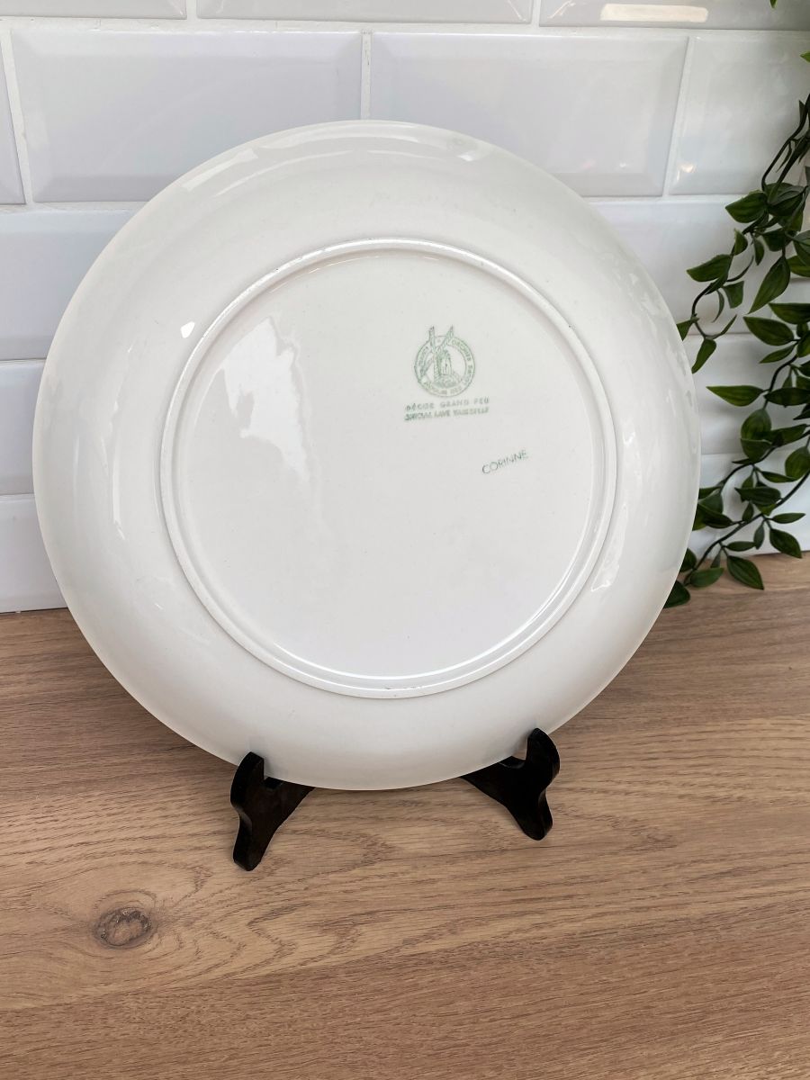 Plat de service creux Moulin des loups, modèle Corinne. Bel état, quelques traces d'usage en fond de plat peu visibles mais néanmoins présentes. Diamètre 28,4 cm, hauteur 3,8 cm. Je possède d'autres plats du même modèle, n'hésitez pas à regarder mes autres annonces, envoi groupé possible, contactez moi. V412-1