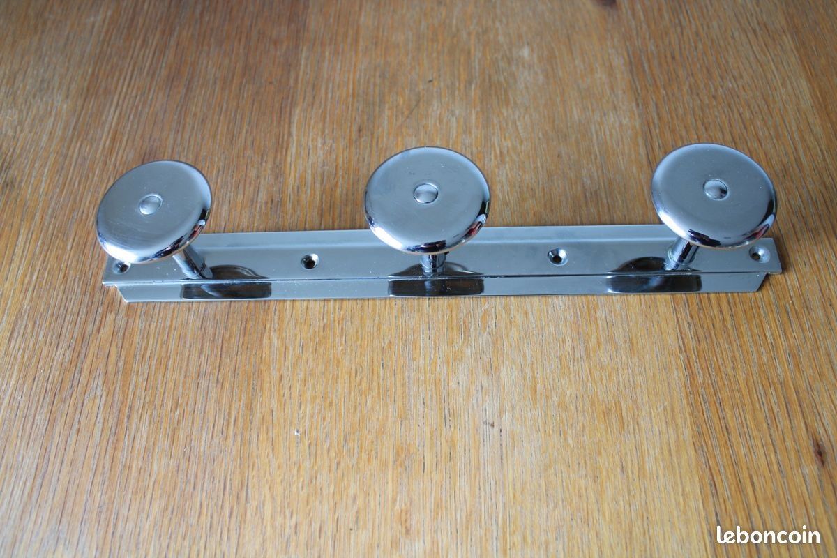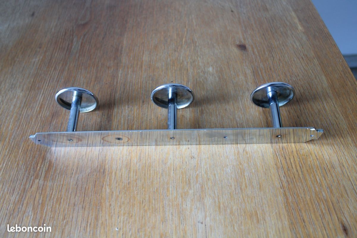 3 accroches de diamètre 5,5cm. Bon état général, pas de corrosion, quelques éraflures sur le chrome.