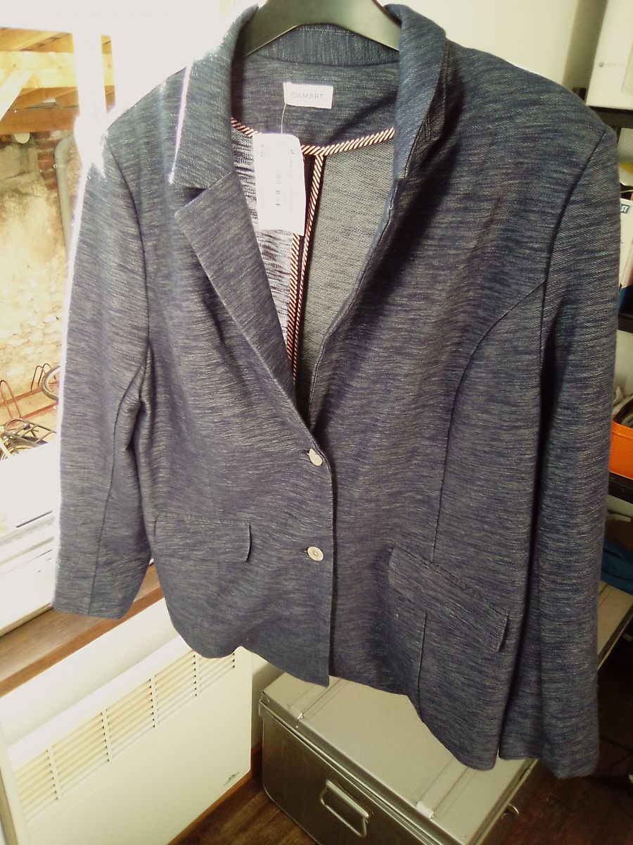 Veste demi-saison, en maille Bleu Chiné Damart, col Tai, taille 50
