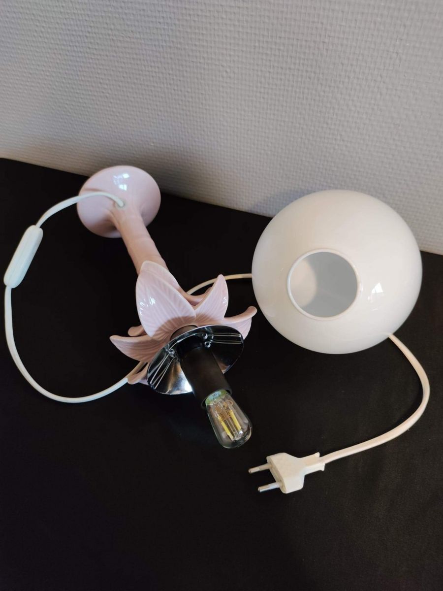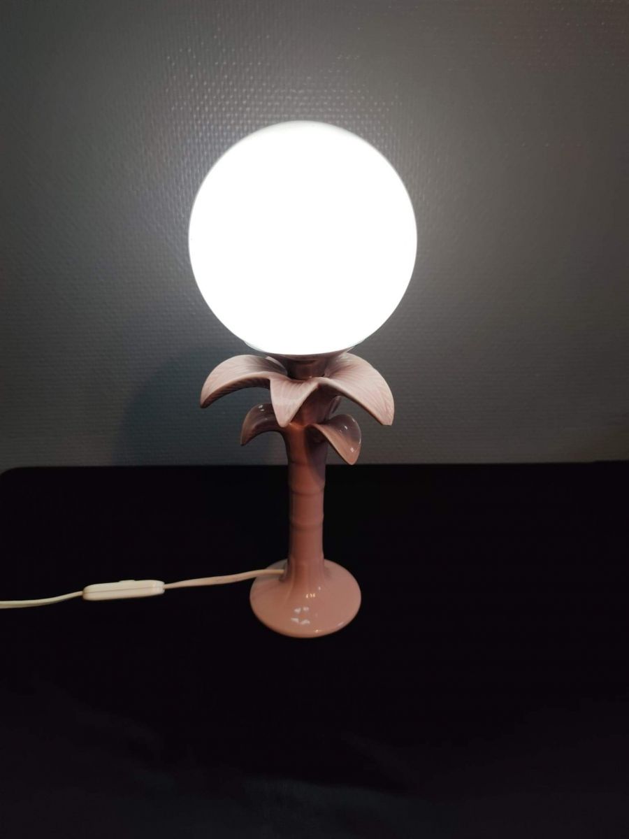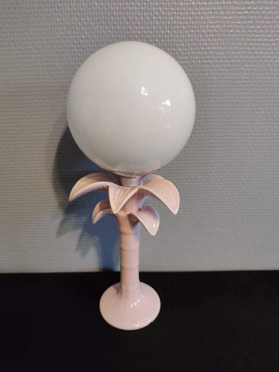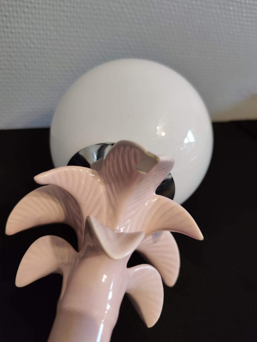 lampe palmier en céramique rose et globe en opaline blanc
