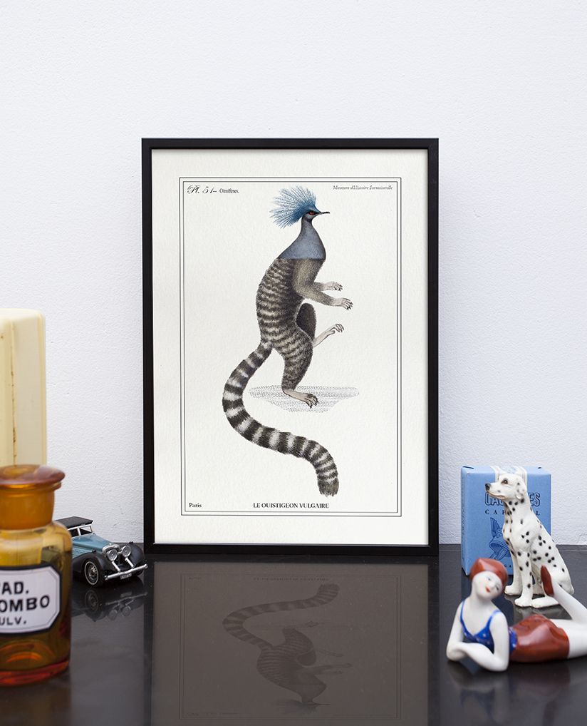 Chimère composée à partir de 2 anciennes gravures datant de 1850. C’est une manière étonnante et ludique de redécouvrir ces superbes gravures d'époque. Ici : le ouistigeon vulgaire. Pour amateur-rice-s d'illustration hors des sentiers battus ! La composition typographique est dans l’esprit des documents animaliers de cette période. Le format A5 avec une seule chimère est idéal pour composer un ensemble dynamique de plusieurs cadres. Tirage d'art réalisé en impression pigmentaire de très haute qualité sur papier 300gr. Le résultat est magnifique, d’une grande précision, un rendu identique à une sérigraphie ou l’offset, mat et velouté (c’est la qualité des tirages de galeries d’art). Le tirage sera discrètement signé en bas à droite. Tirage vendu seul sans le cadre (possibilité de l’obtenir encadré). D’autres chimères disponibles. Format A5 = 15 X 21 cm ou A4 = 21 x 30 cm (50€)