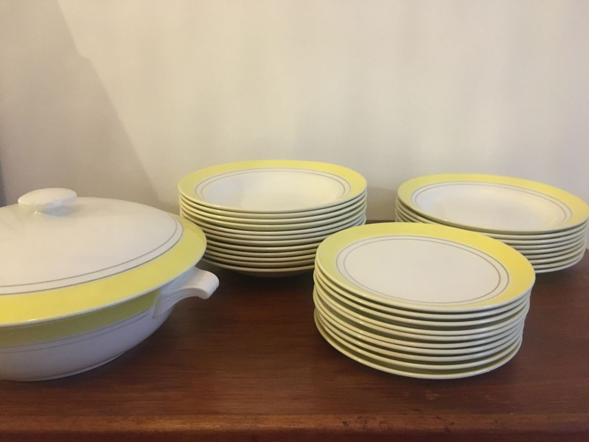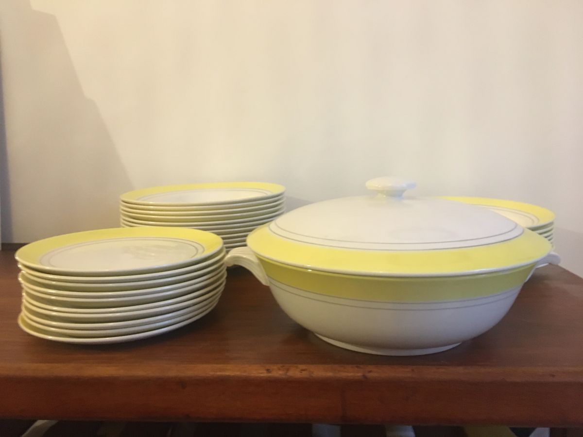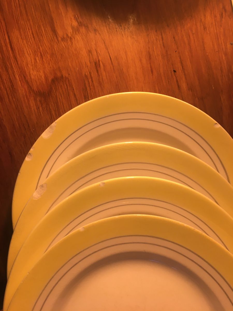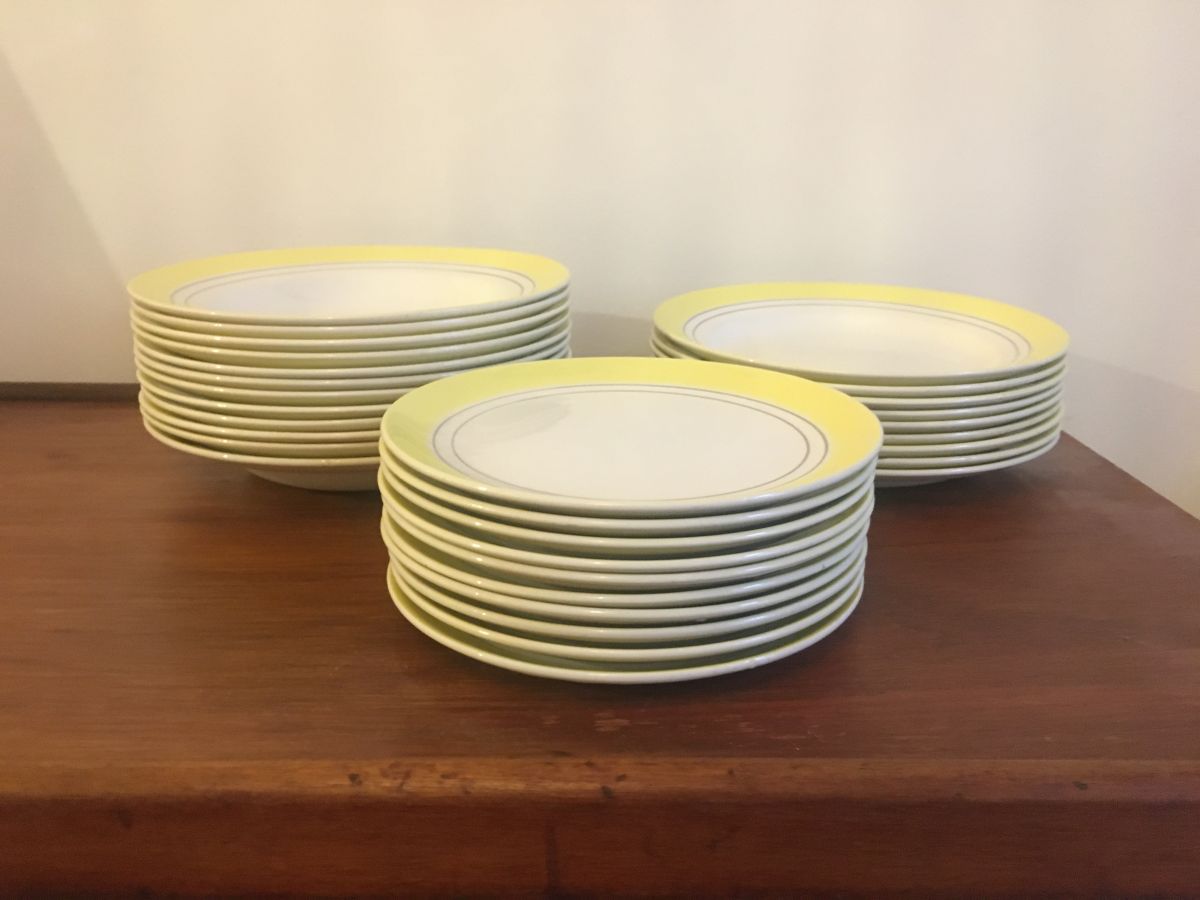 Le jaune est pâle et passe partout en égayant la table, attention, la photo des assiettes ébréchées ne reflète pas la vraie couleur!