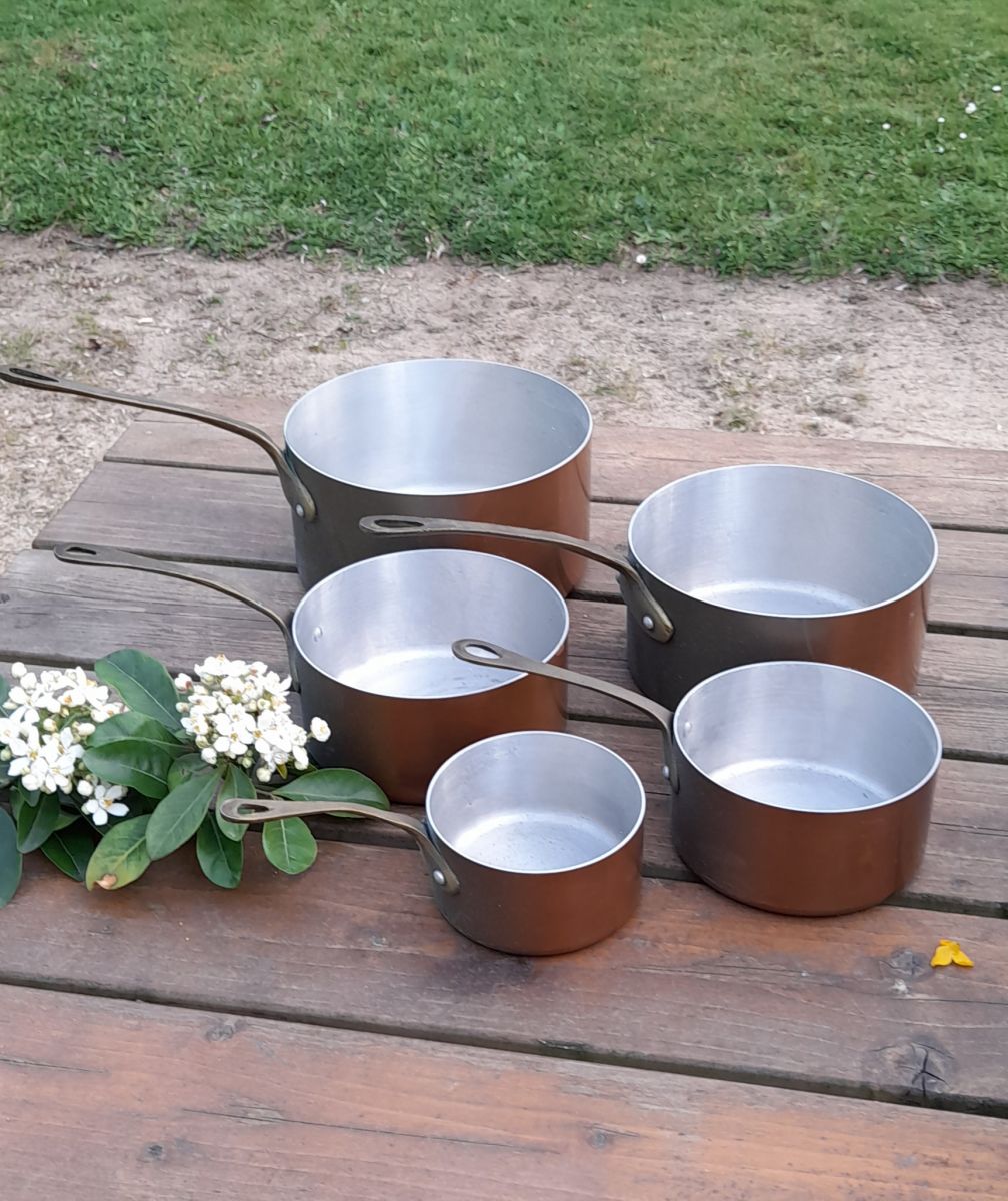 5 casseroles anciennes cuivre et etain