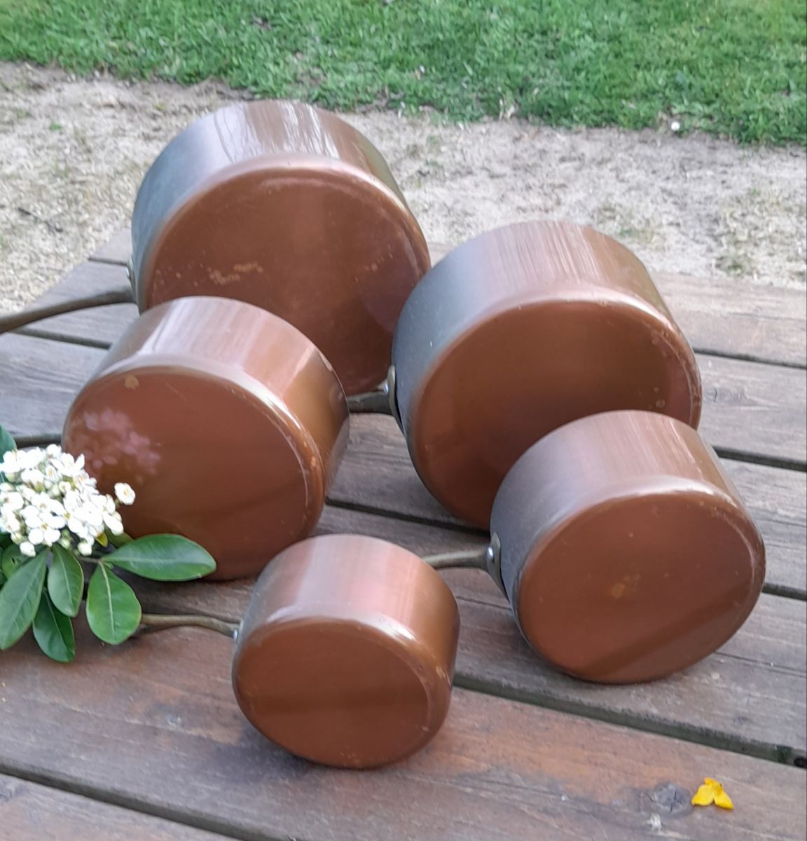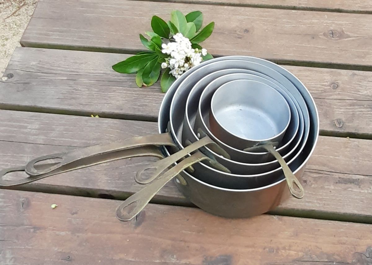 5 casseroles début XXeme, belle patine du temps pour ces dames centenaires.