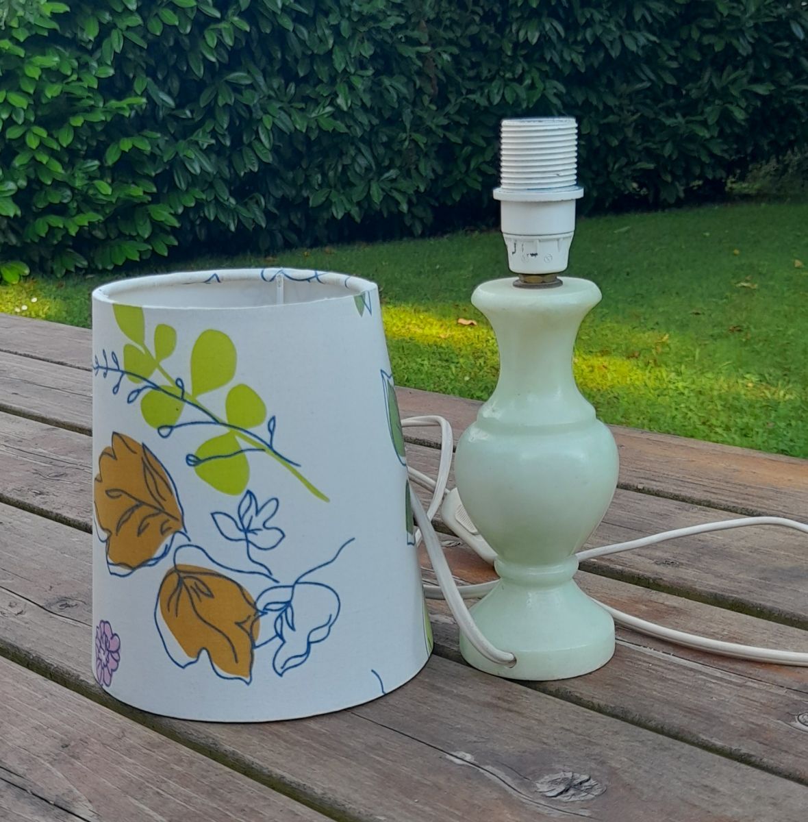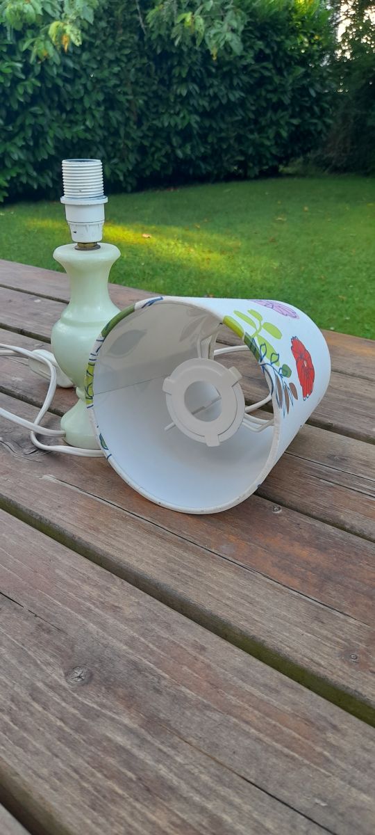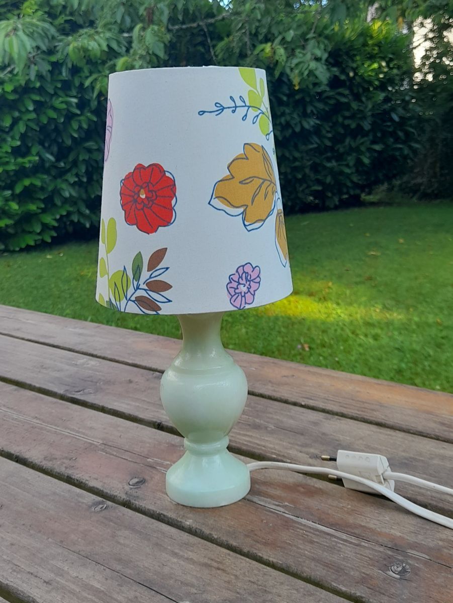 L'abat jour tissu à fleur donne un petit air bucolique à l'ensemble