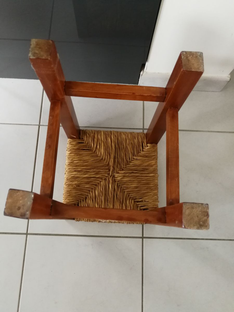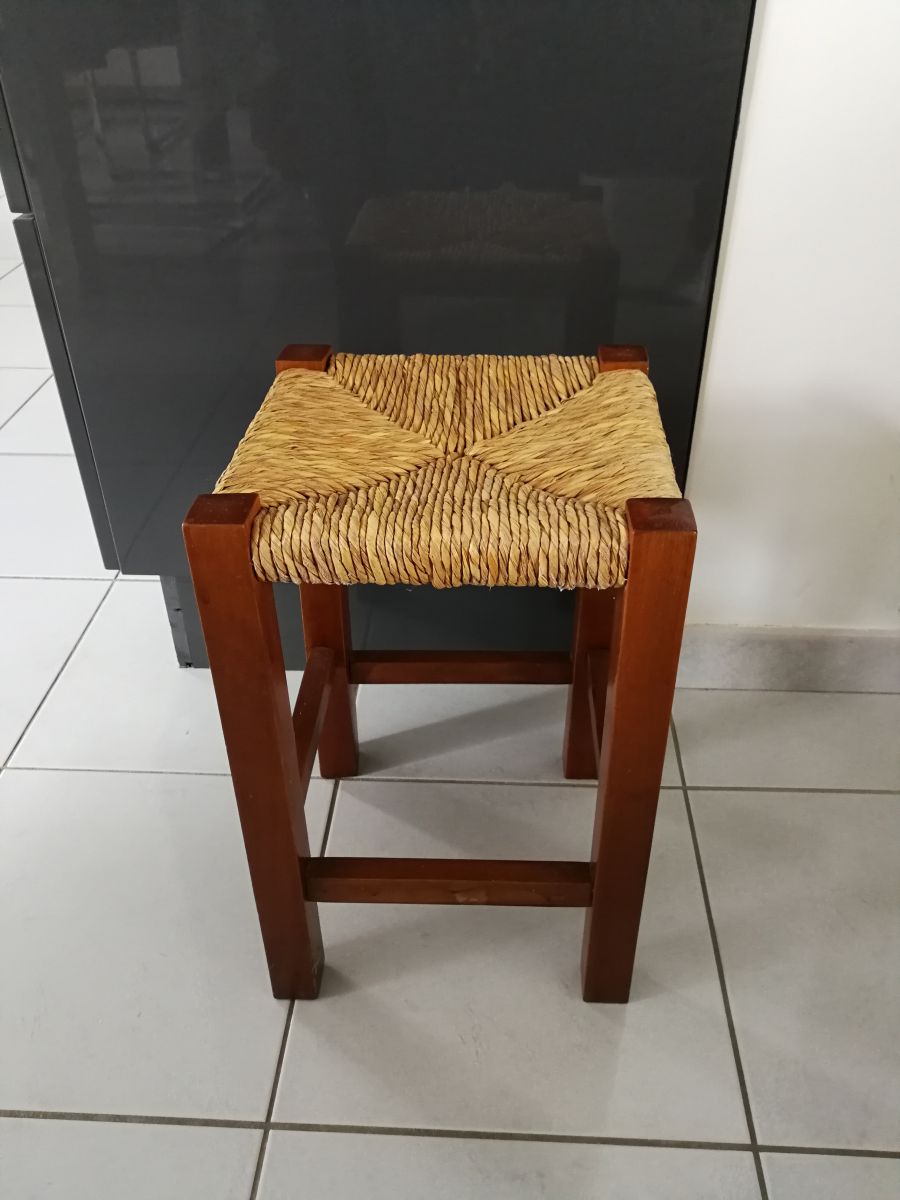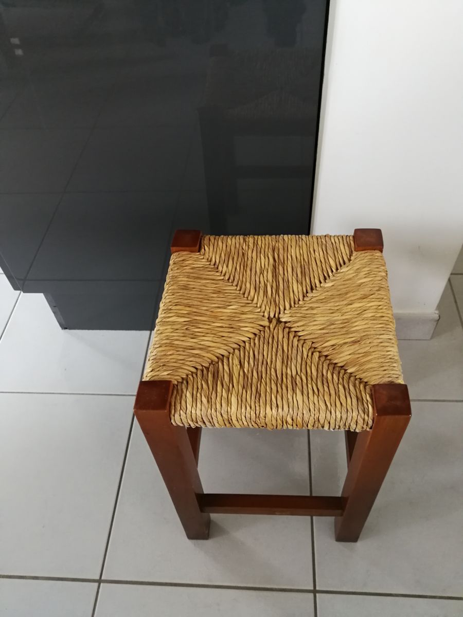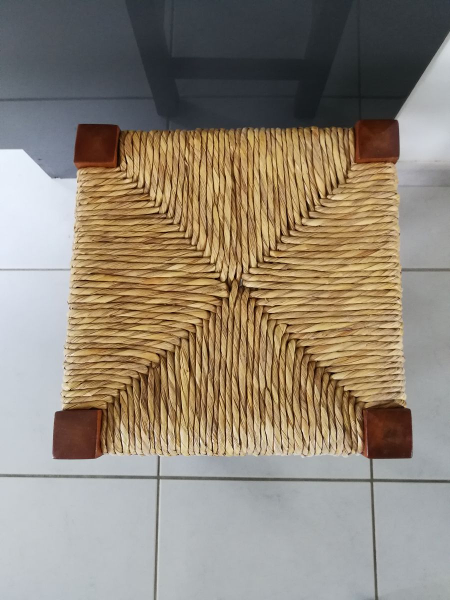 Petit tabouret en paille et bois idéal pour une chambre d'amis.