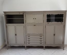 Rénover et peint en gris clair, ce vaisselier est magnifique et permet de nombreux rangements. N’hésitez pas si vous avez des questions.