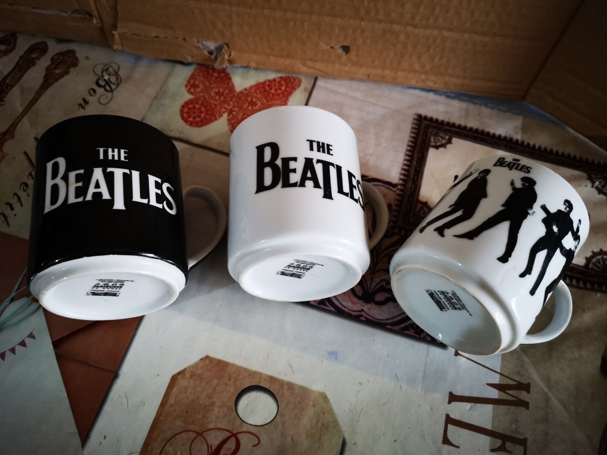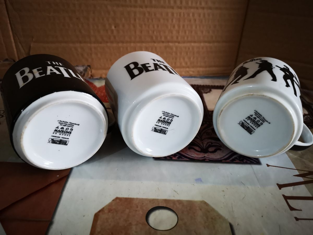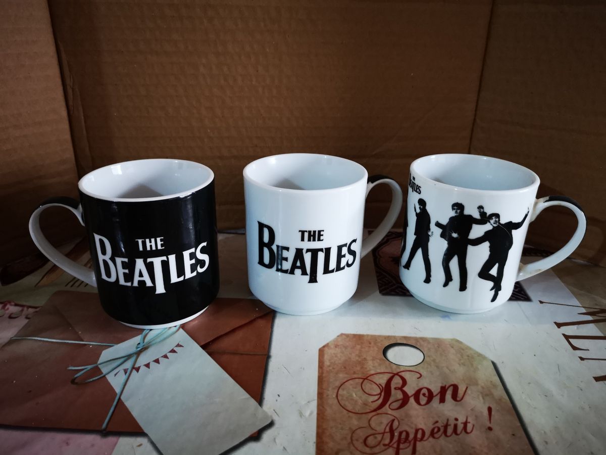 lot de 3 mugs BEATLES en etat neuf céramique 9 cm de haute 7 ,9 de diamétre . envoi protégé en colissimo 48 heures .