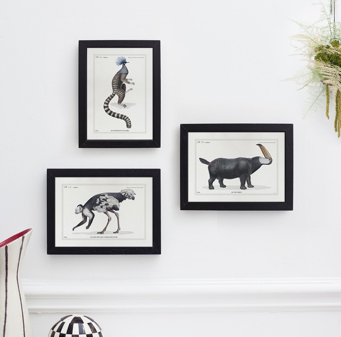 Lot de 3 chimères au choix (voir autres annonces). Elles sont composées à partir d'anciennes gravures datant de 1850. C’est une manière étonnante et ludique de redécouvrir ces superbes gravures d'époque. Le sajoutruche, le toucéros, le ouistigeon, l'hétatouron, l'oitèle royal… Pour amateur-rice-s d'illustration hors des sentiers battus ! La composition typographique est dans l’esprit des documents animaliers de cette période. Le format A5 avec une seule chimère est idéal pour composer un ensemble dynamique de plusieurs cadres. Tirage d'art réalisé en impression pigmentaire de très haute qualité sur papier 300gr. Le résultat est magnifique, d’une grande précision, un rendu identique à une sérigraphie ou l’offset, mat et velouté (c’est la qualité des tirages de galeries d’art). Le tirage sera discrètement signé en bas à droite. Tirages vendus seuls sans le cadre. D’autres chimères disponibles. 3 x formats A5 = 15 X 21 cm