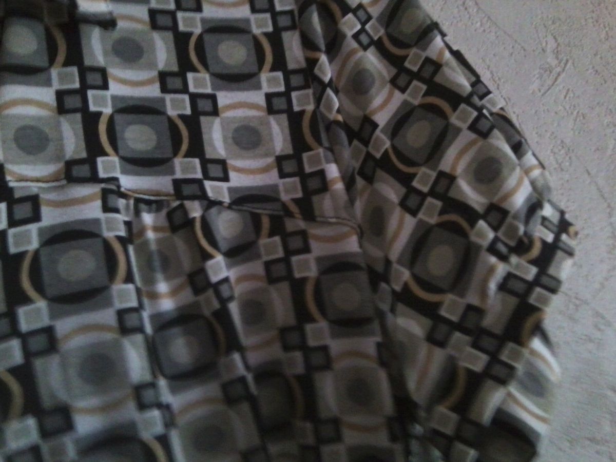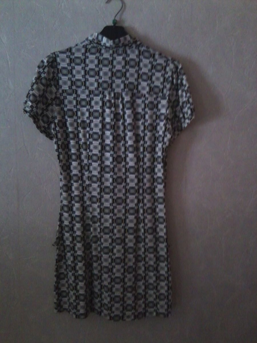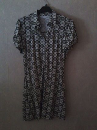 Jolie tunique à manches courtes , boutonnée devant ,aux motifs géométriques années 1960/70.
